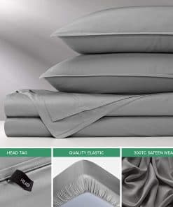 Juego de sábanas Split King de bambú puro de primera calidad, elaborado con la suavidad y frescura de la viscosa orgánica derivada del bambú. Este conjunto de sábanas de lujo incluye 2 sábanas ajustadas, 1 sábana plana y 2 fundas de almohada con cierre estilo sobre, diseñado para adaptarse a un colchón Split King de 76″x80″. Las sábanas y fundas de almohada cuentan con costuras dobles cosidas de calidad para una durabilidad duradera y un fácil cuidado con lavado en agua fría. La tela de viscosa derivada del bambú es termorreguladora de forma natural, manteniéndote fresco y relajado mientras duermes para un confort durante todo el año. Con bolsillos ajustados profundos que se adaptan a colchones de hasta 16 pulgadas de grosor, esta ropa de cama ofrece una sensación más suave y sedosa que incluso las sábanas de algodón de mayor cantidad de hilos. Cada compra está respaldada por una garantía de por vida contra defectos en materiales y mano de obra, para que puedas dormir tranquilamente sabiendo que nuestras sábanas están hechas con materiales obtenidos de forma responsable. Diseñado en Florida, importado desde China, todas las telas han sido sometidas a pruebas rigurosas estándar de inflamabilidad, metales pesados y ftalatos para tu tranquilidad y bienestar.
