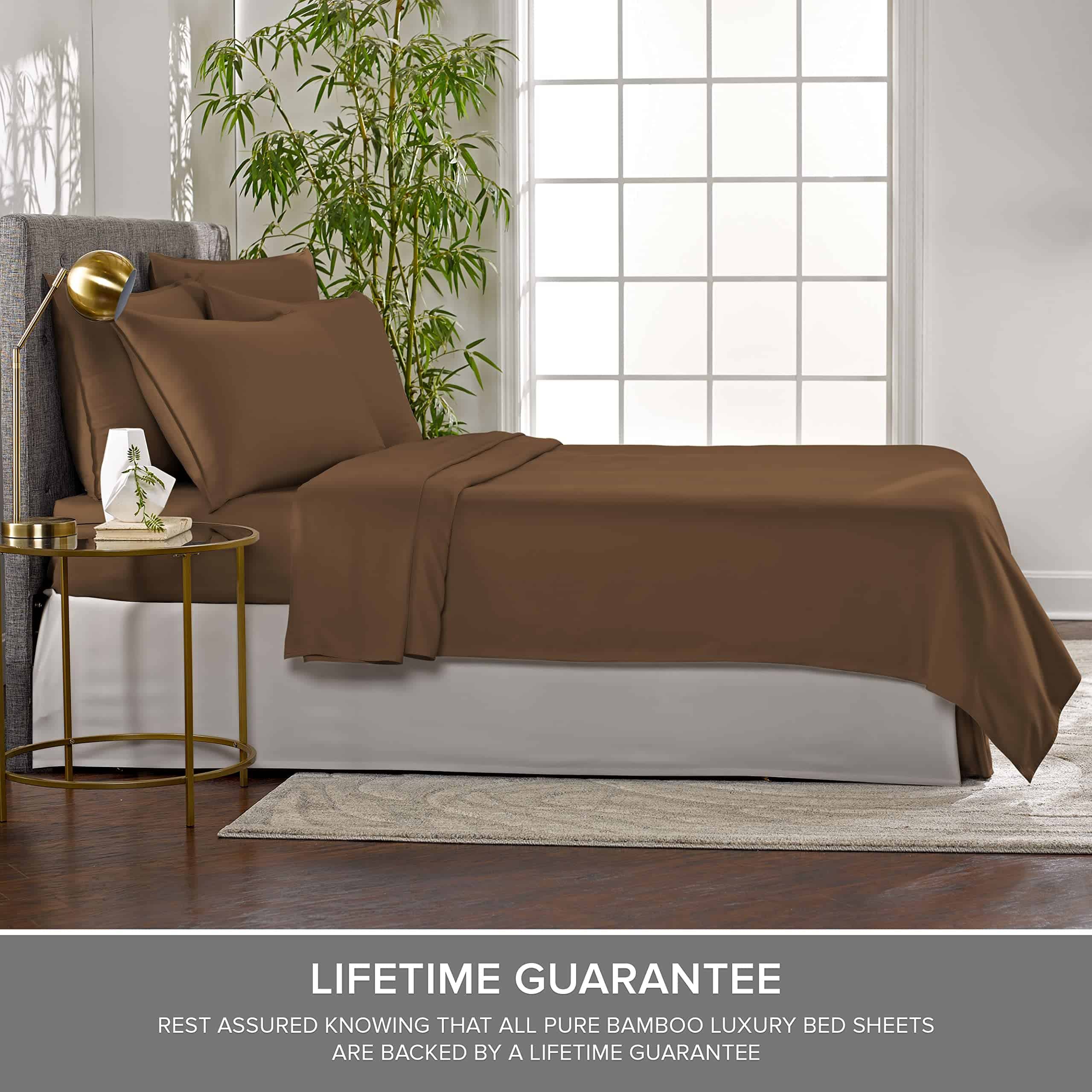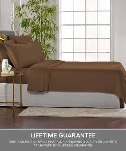 El juego de sábanas Split King de Pure Bamboo está elaborado con la suave y lujosa calidad del 100% viscosa orgánico derivado de bambú. Incluye 2 sábanas ajustables, 1 sábana plana y 2 fundas de almohada con cierre tipo sobre. La tela es termorreguladora para mantenerte fresco y cómodo durante toda la noche. Con bolsillos ajustados profundos y tejido de satén de 300 hilos para una sensación suave y sedosa. Además, está respaldado por una garantía de por vida contra defectos en materiales y fabricación.