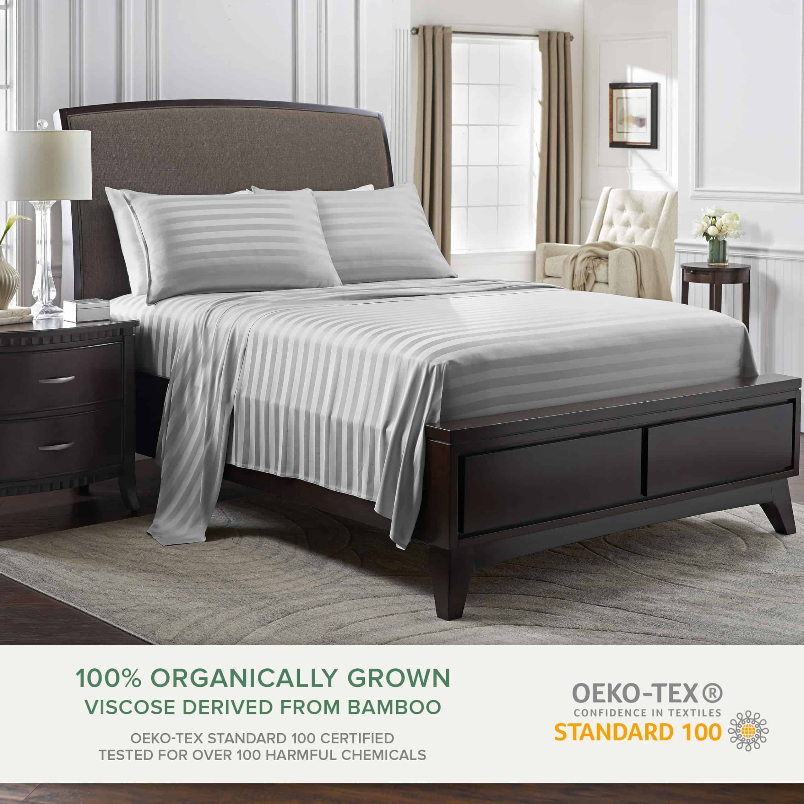 Crafted from the finest quality luxuriously soft 100% Organically Grown Viscose derived from Bamboo, and are OEKO-TEX Standard 100 Certified and tested to be free from over 100 harmful substances, ensuring that it is safe and healthy for your family. Our bed sheets are never blended with other fibers or fabrics unlike most competitors.