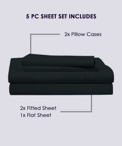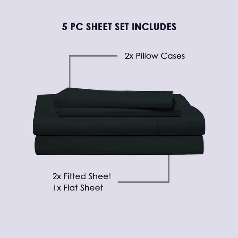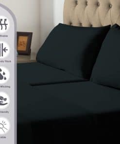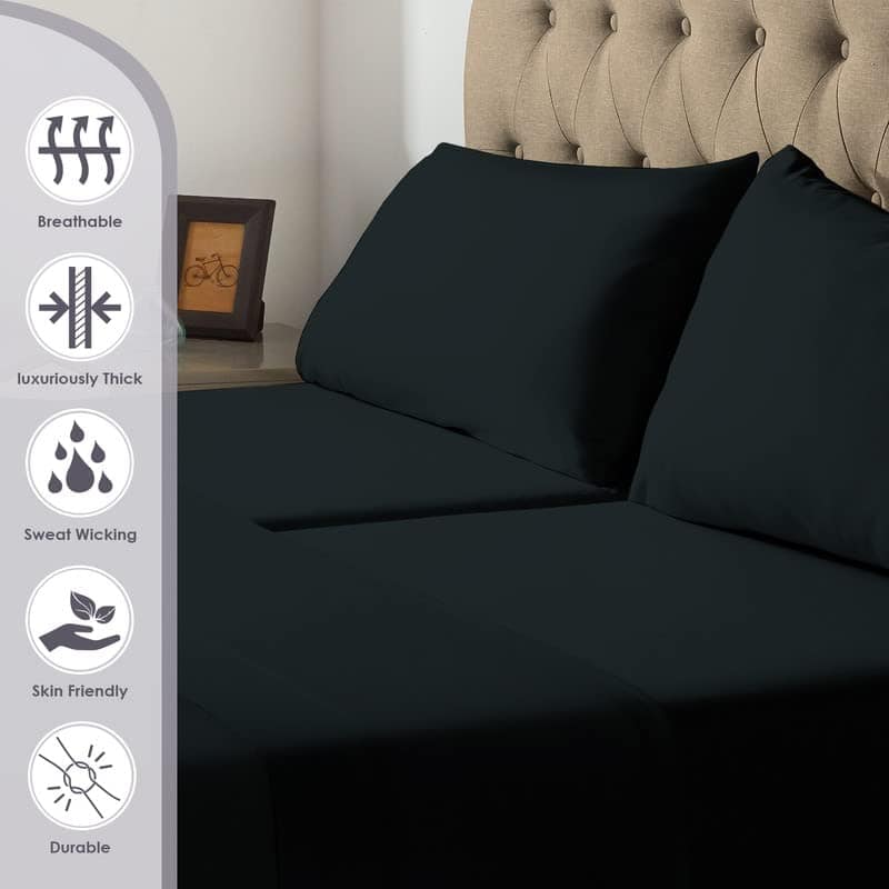 Juego de sábanas Split King Pizuna 100% Algodón Negro, 800