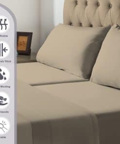 2. Costura patentada para un ajuste perfecto: El juego de sábanas split king incluye: 1 Sábana plana split king (108 x 102 pulgadas) – Absorbe rápidamente el sudor y protege de las manchas, asegurando la frescura del edredón. 2 Sábanas ajustables con bolsillo profundo (39 x 80 + 15 pulgadas) – Viene con una costura patentada única que tiene elástico grueso y de alta calidad para un ajuste firme en colchones de 8 a 15 pulgadas de grosor. 2 Fundas de almohada king (20 x 40 pulgadas) – Con un ribete de 4″ estilo Pizuna que le da un aspecto elegante y un sueño cómodo.