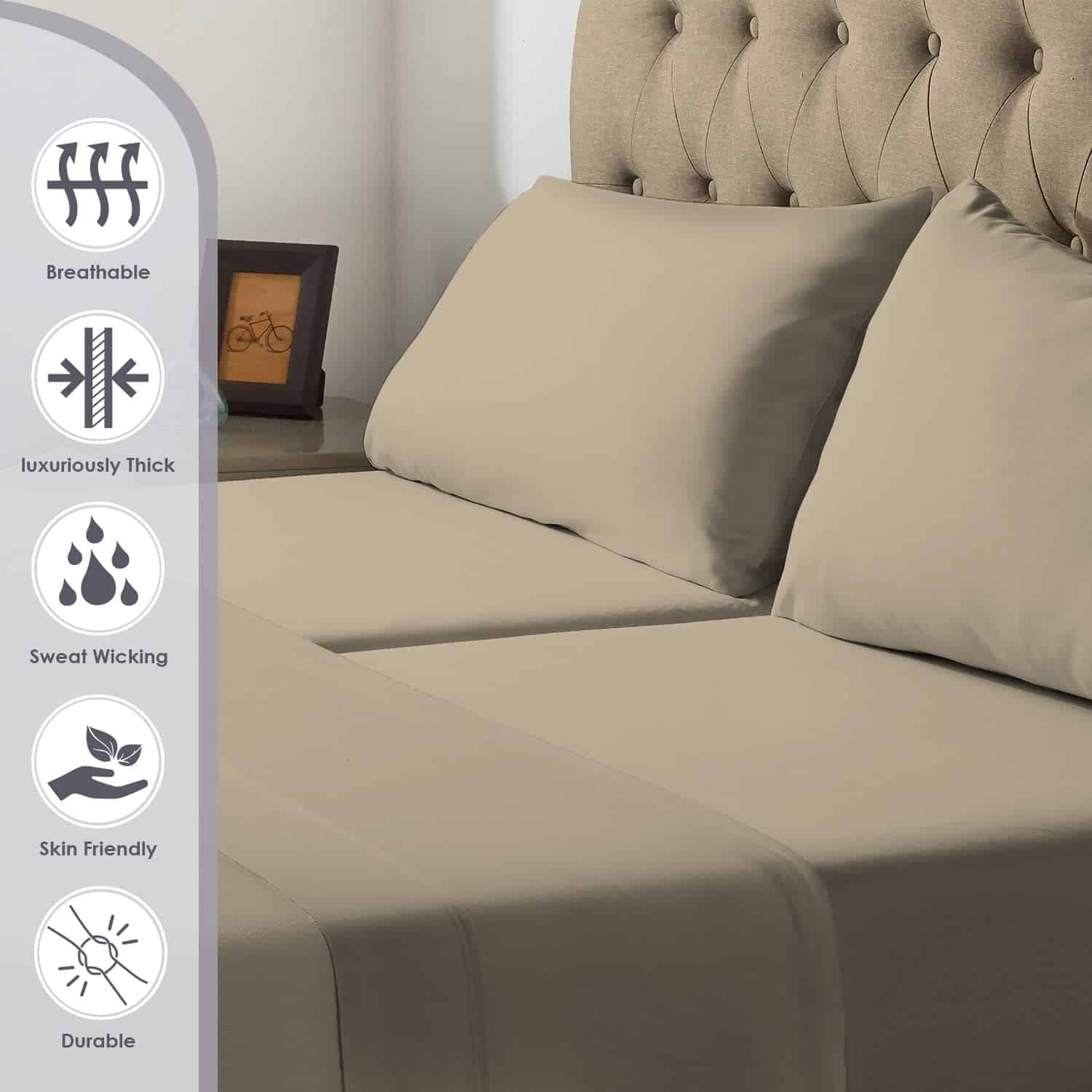 4. Promesa de calidad de Pizuna: Los productos de Pizuna son individualmente confeccionados, medidos y revisados (pieza por pieza) por nuestro equipo de Control de Calidad. El tejido en el juego de sábanas split king está certificado OEKO-TEX y libre de AZO (2024), libre de sustancias sintéticas y respetuoso con el planeta, lo que lo hace suave incluso para la piel más delicada.