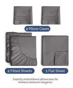 1. JUEGO DE SÁBANAS DE 5 PIEZAS: 2 fundas de almohada, una sábana plana y 2 sábanas ajustables. Sábana plana (108″ x 102″), 2 sábanas ajustables (39″ x 80″) y 2 fundas de almohada (20″ x 40″). 2. BOLSILLOS PROFUNDOS/AJUSTE FÁCIL: Se ajustan a colchones de aproximadamente 16 pulgadas de profundidad. Si su colchón es más pequeño que 16 pulgadas, encajará perfectamente. 3. SIENTE LA DIFERENCIA: ¡Si buscas sábanas muy suaves, las has encontrado! Son transpirables, frescas y súper suaves como la seda. El confort de estas sábanas te hará volver por más. ¡Son más suaves que las sábanas de algodón egipcio y de algodón orgánico! ¡Lo mejor para cualquier habitación de tu casa – dormitorio, habitación de invitados, habitación de niños, RV, casa de vacaciones. Grandes juegos de sábanas y fundas de almohada para niños, adolescentes, hombres y mujeres! 4. MICROFIBRA CEPILLADA DE LA MÁS ALTA CALIDAD: Una diferencia más ligera. Un toque más suave y más fino. Están hechos de los hilos de microfibra de doble cepillado de la más alta calidad. La maravilla prácticamente imperceptible de las sábanas CGK Unlimited te hará volver por más. 5. ¡GRANDES SÁBANAS POR EL PRECIO! Estas son algunas de las sábanas más suaves y asequibles que encontrarás. Gran relación calidad-precio en cuanto a comodidad y suavidad y a diferencia de muchas otras sábanas y materiales muy caros, estas sábanas CGK te ofrecerán comodidad y suavidad a un precio razonable.