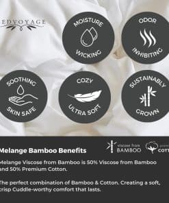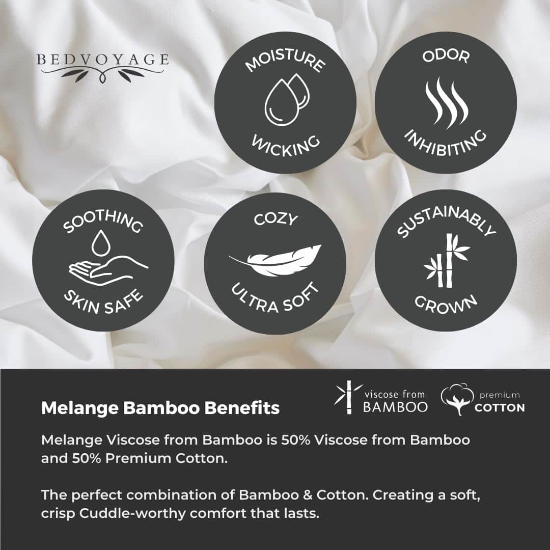 1. Lujo y Comodidad Refrescante: Experimenta las sábanas más suaves con nuestras sábanas de bambú BedVoyage. Disfruta de una noche de sueño fresca y cómoda con una tela transpirable que regula naturalmente la temperatura, elaborada a partir de una mezcla premium de 50% viscosa de bambú y 50% algodón.