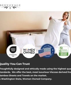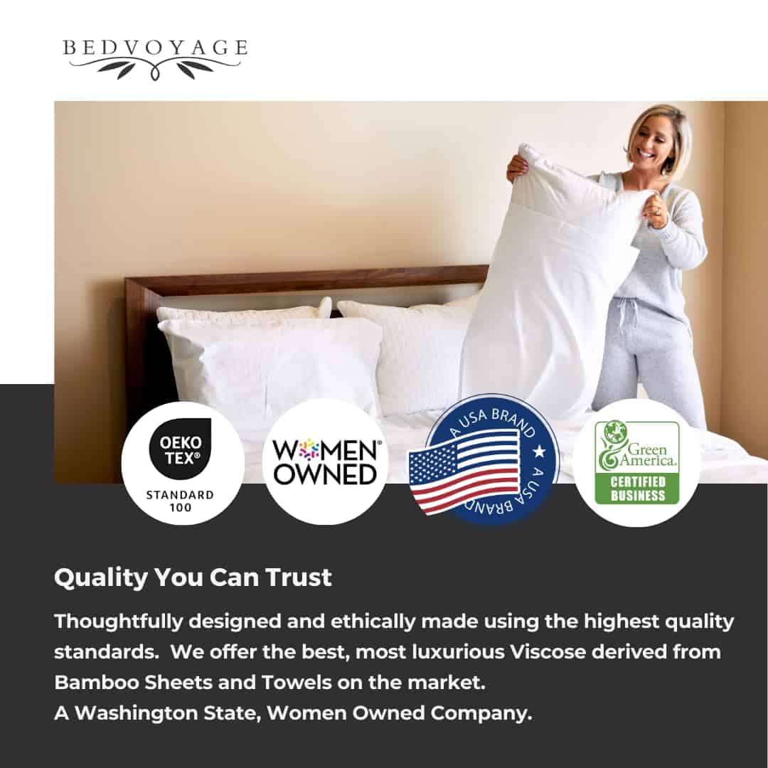 4. Calidad Certificada: Elige BedVoyage para la excelencia certificada en cada juego de sábanas. Suaves para la piel sensible y seguras para los bebés, nuestras sábanas están certificadas por Oeko-Tex Standard 100 y producidas en una fábrica responsable certificada MADE IN GREEN. Confía en nuestra marca estadounidense propiedad de mujeres para tus necesidades de ropa de cama premium.