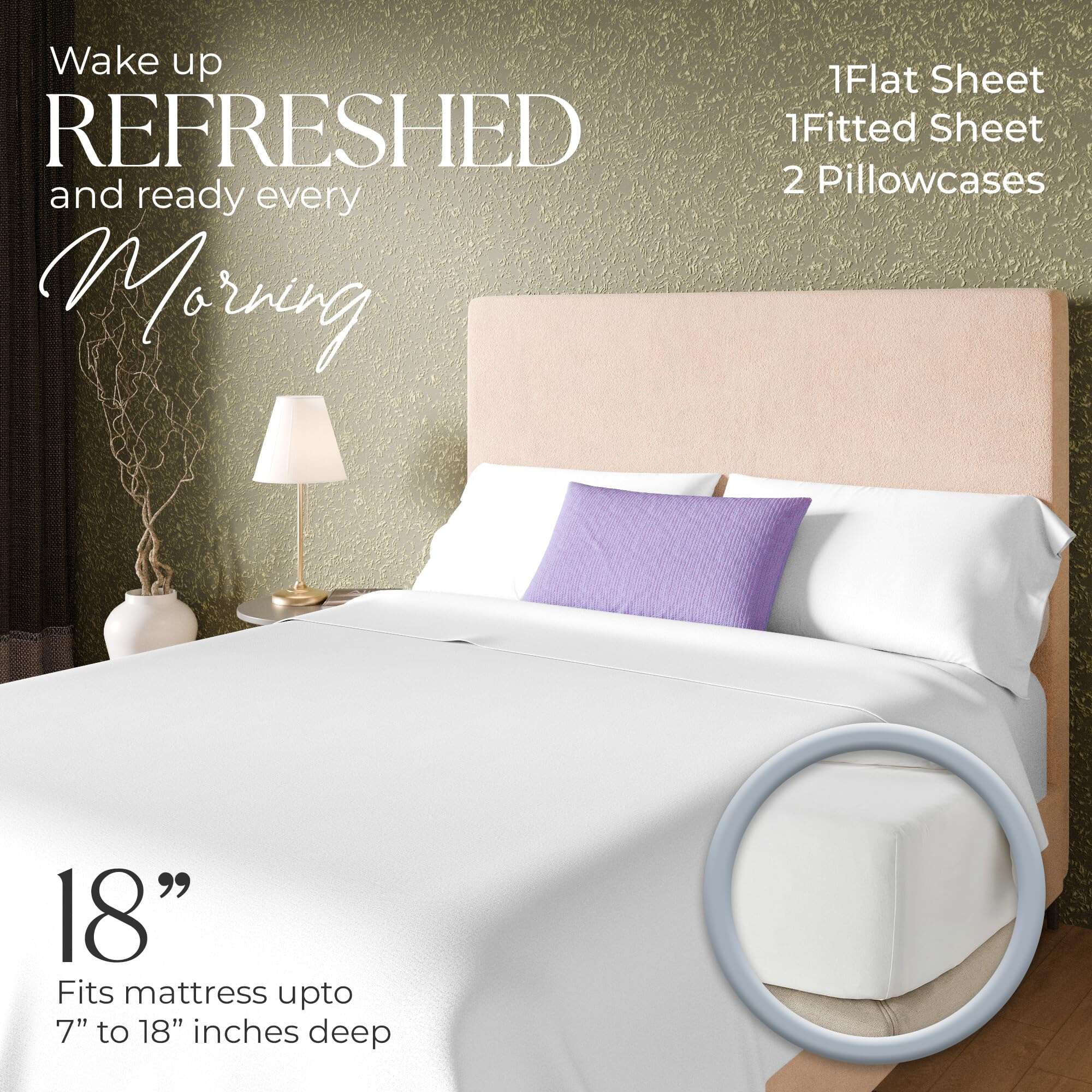3. Ajuste perfecto para tu colchón: La sábana ajustable de bolsillo profundo avanzado está completamente elástica para adaptarse a colchones de hasta 16 pulgadas, permitiendo un montaje ceñido incluso con diferentes profundidades de colchones. También cuenta con una «Smart Head/Foot Tag» para indicar a qué lado pertenece para facilitar su uso.
