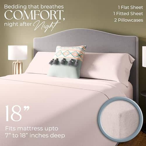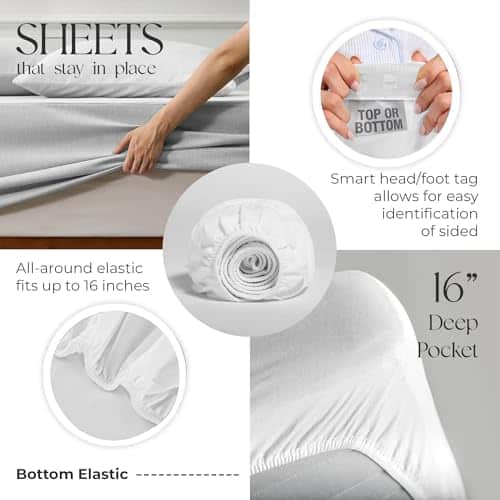 3. Ajuste Perfecto para tu Colchón: Nuestra sábana ajustable twin tiene elásticos completos para adaptarse a colchones de hasta 14 pulgadas, permitiendo un ensamblaje ajustado incluso con diferentes profundidades de colchones. También cuenta con una «Etiqueta Inteligente Cabeza/Pie» para indicar a qué lado pertenece para una fácil identificación.