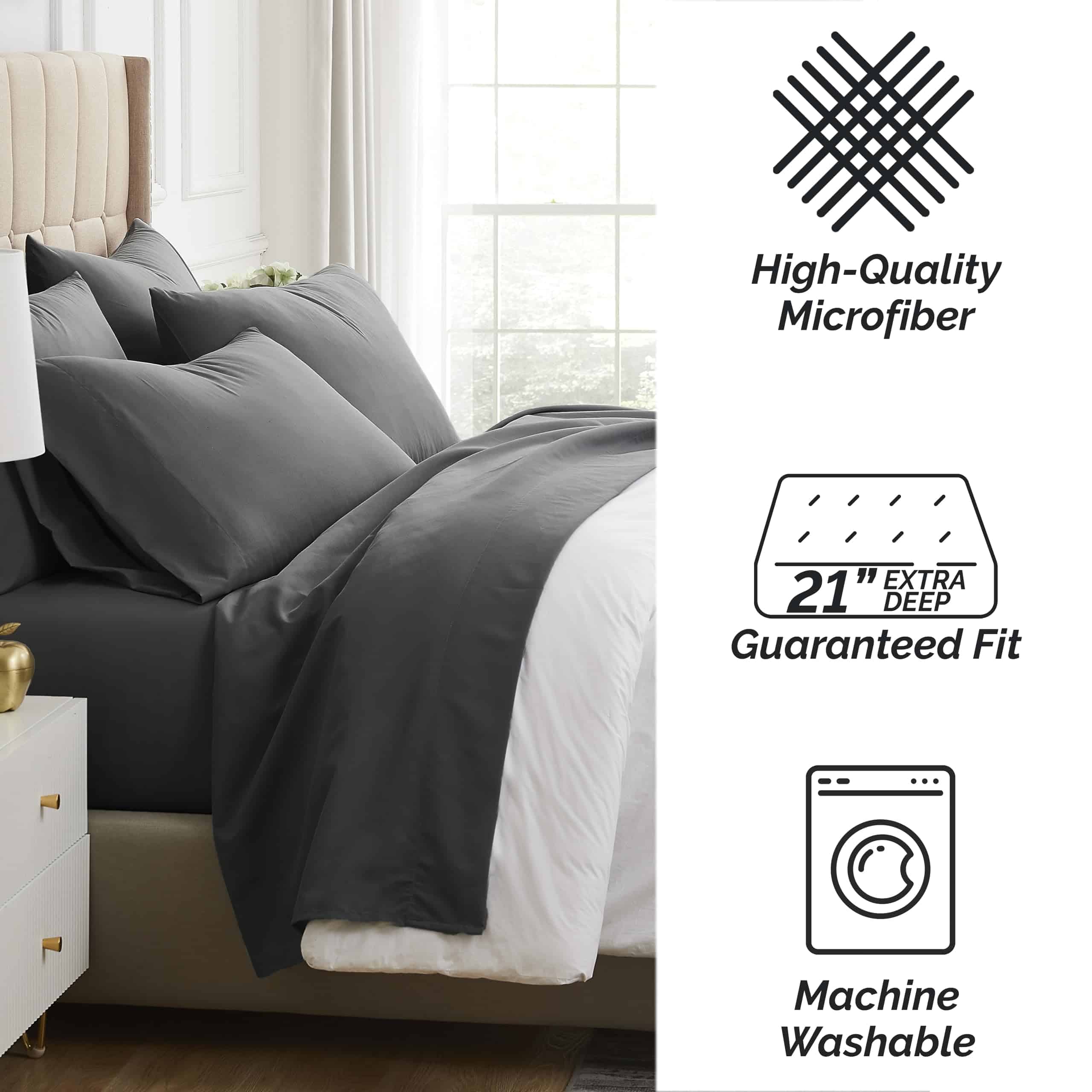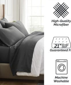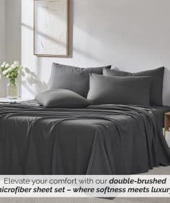 4. SÁBANAS DE LUJO INALTERABLES AL DESVANECIMIENTO Y DE BAJO MANTENIMIENTO: Este juego de cama gris pizarra es lavable a máquina, apto para secadora y mantiene su color y su suavidad con el tiempo, superando a otras versiones de sábanas California king de bolsillo profundo y sábanas de microfibra tamaño king.