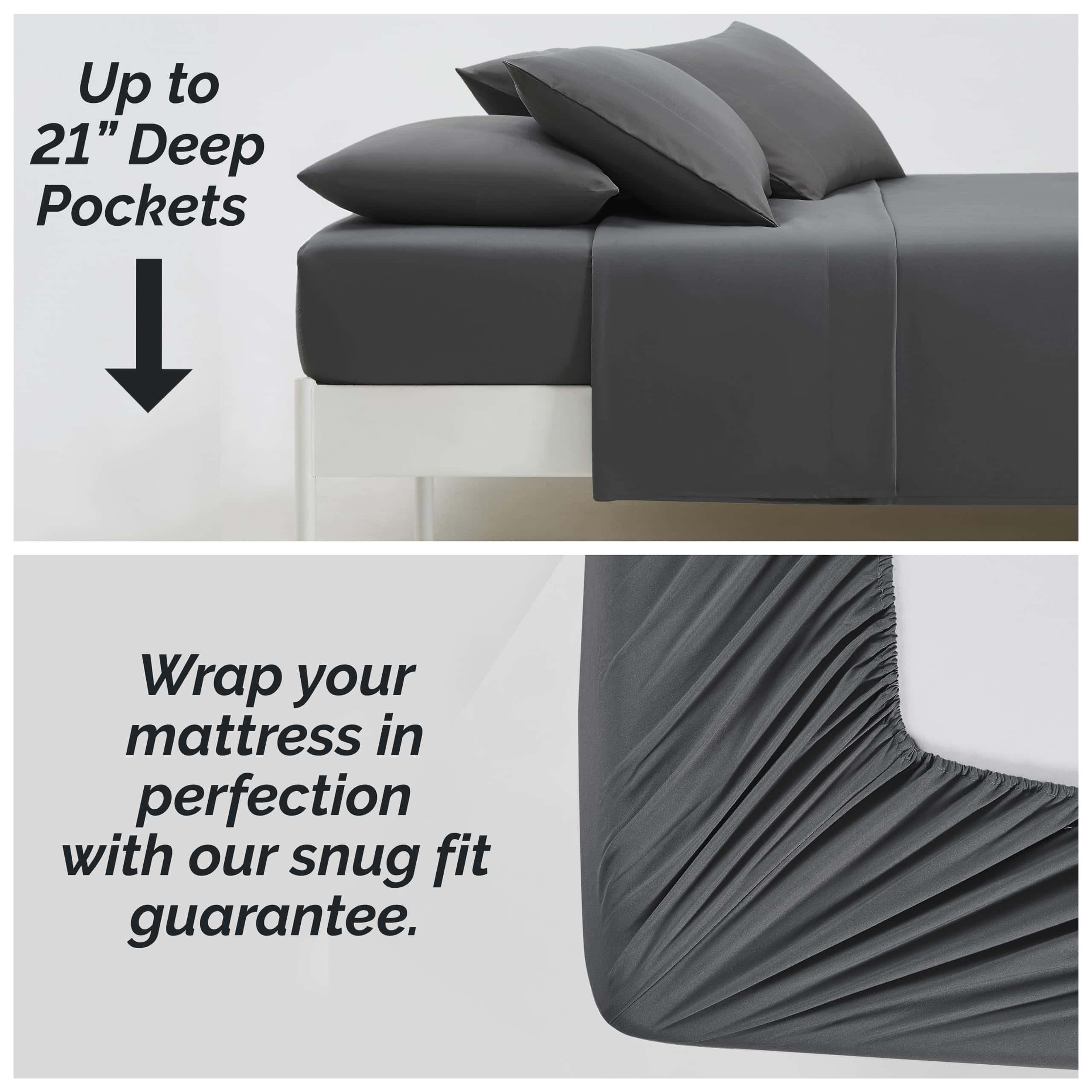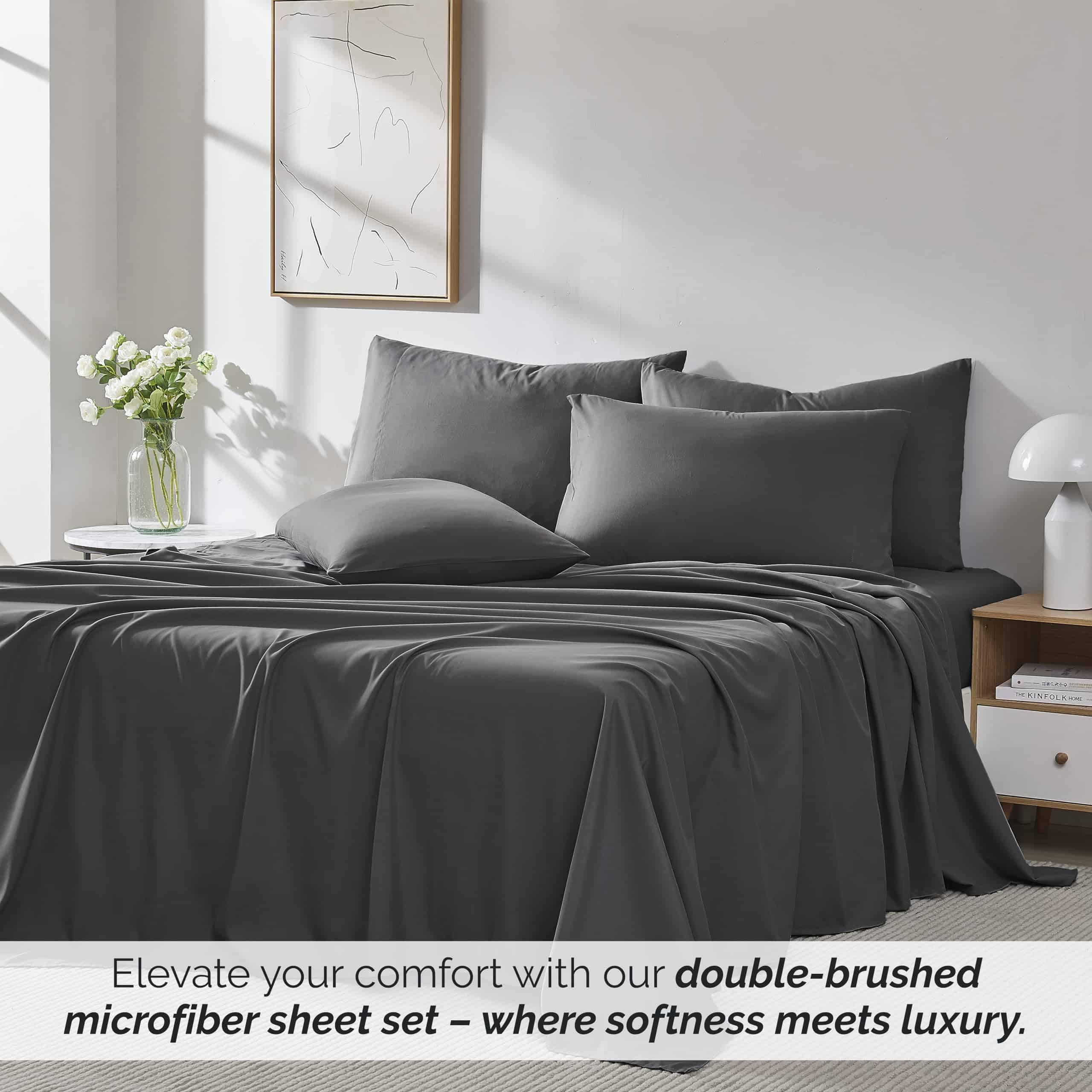 3. MÁS ACOGEDOR CON CADA LAVADO: Nuestras sábanas ligeras y transpirables de Cal King no solo duran, ¡también se vuelven más acogedoras! Acúrquese con sábanas de cama Cal King hechas para brindar comodidad durante todas las temporadas, a diferencia de otras opciones de ropa de cama gris pizarra y juegos de sábanas de bolsillo profundo California king.