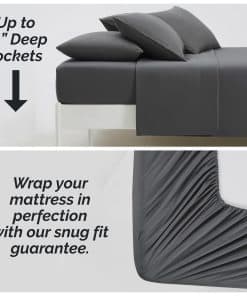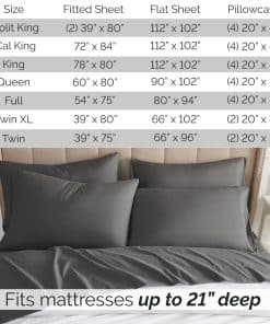 2. SE AJUSTA INCLUSO A LOS COLCHONES MÁS GRUESOS: Diseñado para mantenerse ajustado sin resbalar, nuestro juego de sábanas California King de bolsillo profundo incluye sábanas extras profundas de 21″ con un elástico alrededor para abrazar una cama California King. ¡No más ajustar sus sábanas grises de ardesia!