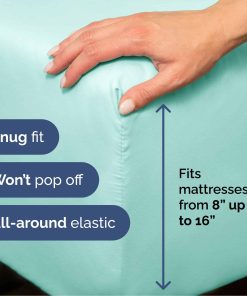 2. BOLSILLOS PROFUNDOS/ AJUSTE FÁCIL: Se ajustan a colchones de hasta aproximadamente 16 pulgadas de profundidad. Si su colchón es más pequeño de 16 pulgadas, encajará perfectamente. Muchos colchones son bastante grandes en estos días y creemos que esta es una buena medida universal que se ajusta a la mayoría de los colchones.