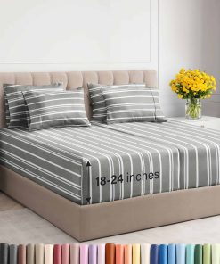 Los tamaños son: Sábana plana 113 pulgadas de ancho y 102 pulgadas de largo. Sábana ajustable 39 pulgadas de ancho y 80 pulgadas de largo con bolsillos de 21 pulgadas (tiene elástico para que pueda estirarse). Las cuatro fundas de almohada son extragrandes de 20 x 40 pulgadas. Estas sábanas están hechas de microfibra, el tipo más suave de sábanas de microfibra que hemos creado. Súper suaves con una sensación ligera. No son crujientes como el algodón. Si está acostumbrado a las sábanas de algodón y nunca ha probado las sábanas de microfibra, le recomendamos que lo haga. Son aún más suaves que el algodón. Estas sábanas son perfectas para colchones con un topper de 3 o 4 pulgadas, toppers de espuma viscoelástica, grandes almohadillas para colchones, colchones con pillow tops, toppers de espuma, grandes toppers de espuma, colchones con pillow tops y espuma viscoelástica. Estas sábanas no se salen. ¡Descanse tranquilo sabiendo que estas sábanas extragrandes se mantendrán ajustadas y en su lugar!