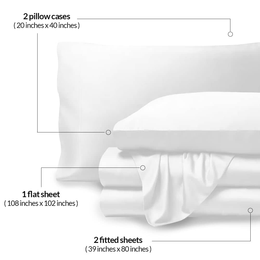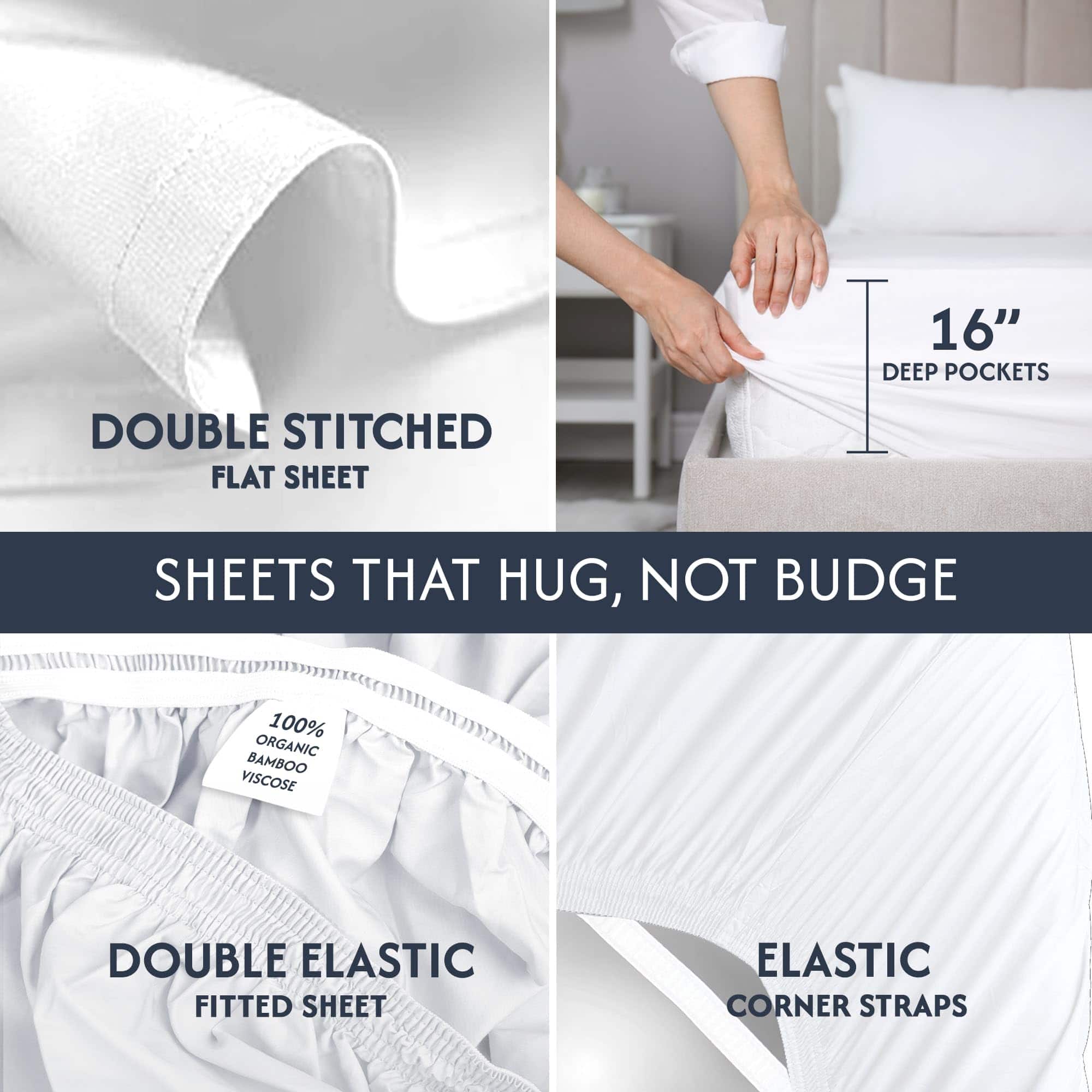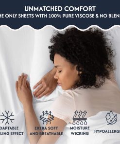4. Confort y ajuste supremo – Juego de 4 piezas: experimenta el ajuste supremo con nuestras sábanas de viscosa de bambú tamaño King con bolsillo profundo de 16″. Este set incluye una sábana plana de 108″x105″, una sábana ajustable de 78″x80″, y dos fundas de almohada de 20″x37″, diseñadas para colchones extra gruesos con un bolsillo profundo para un ajuste ajustado y suave.