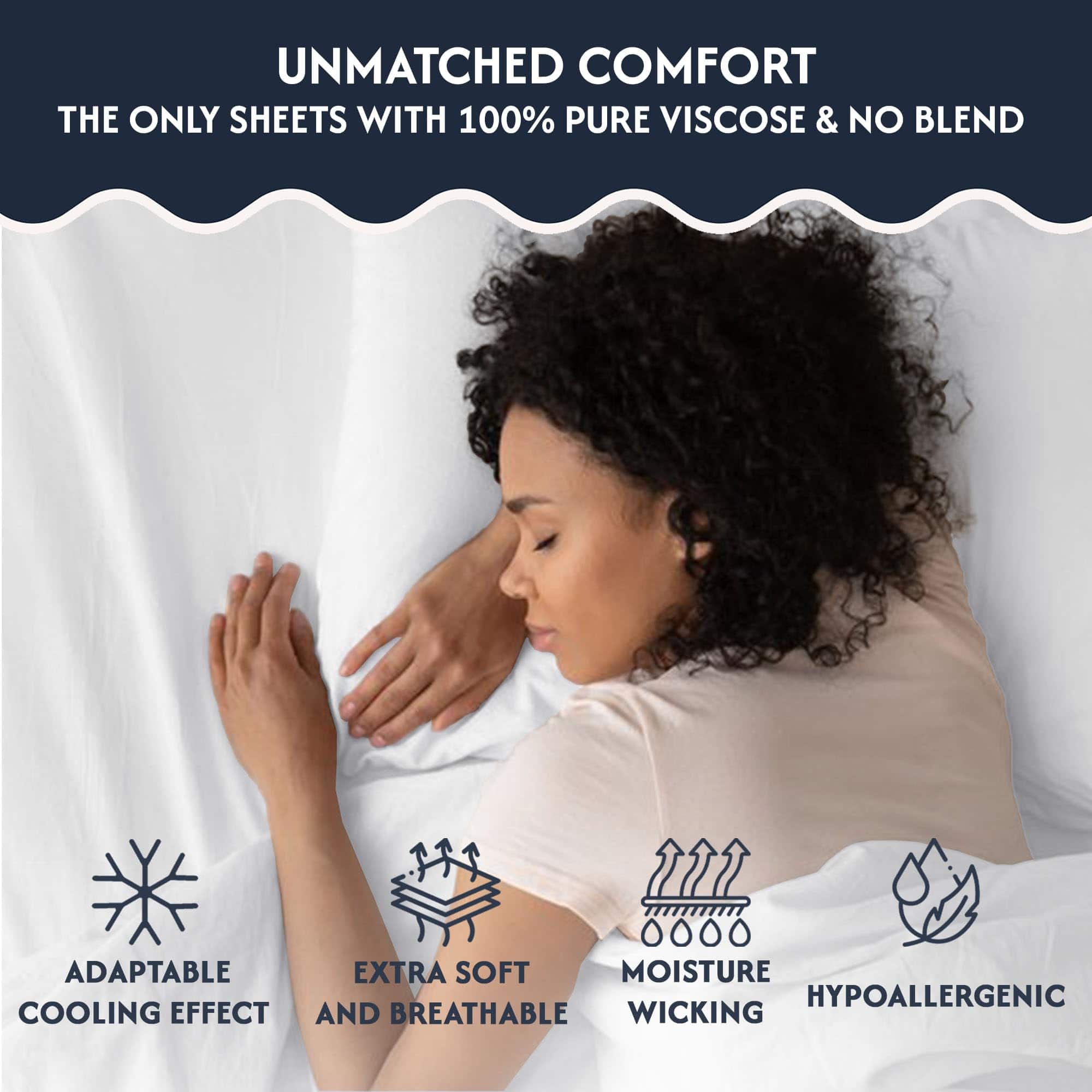 2. Experimenta una comodidad refrescante: relájate con nuestras sábanas tamaño King con tecnología Breezeweave hechas de viscosa derivada del bambú. Naturalmente reguladoras de la temperatura y que absorben la humedad, estas sábanas te mantienen fresco, transpirable y envuelto en lujo durante toda la noche.