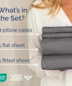 Juego de sábanas tamaño King de 4 piezas – Suave, -Gris oscu