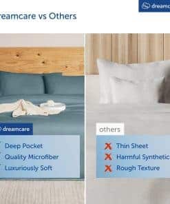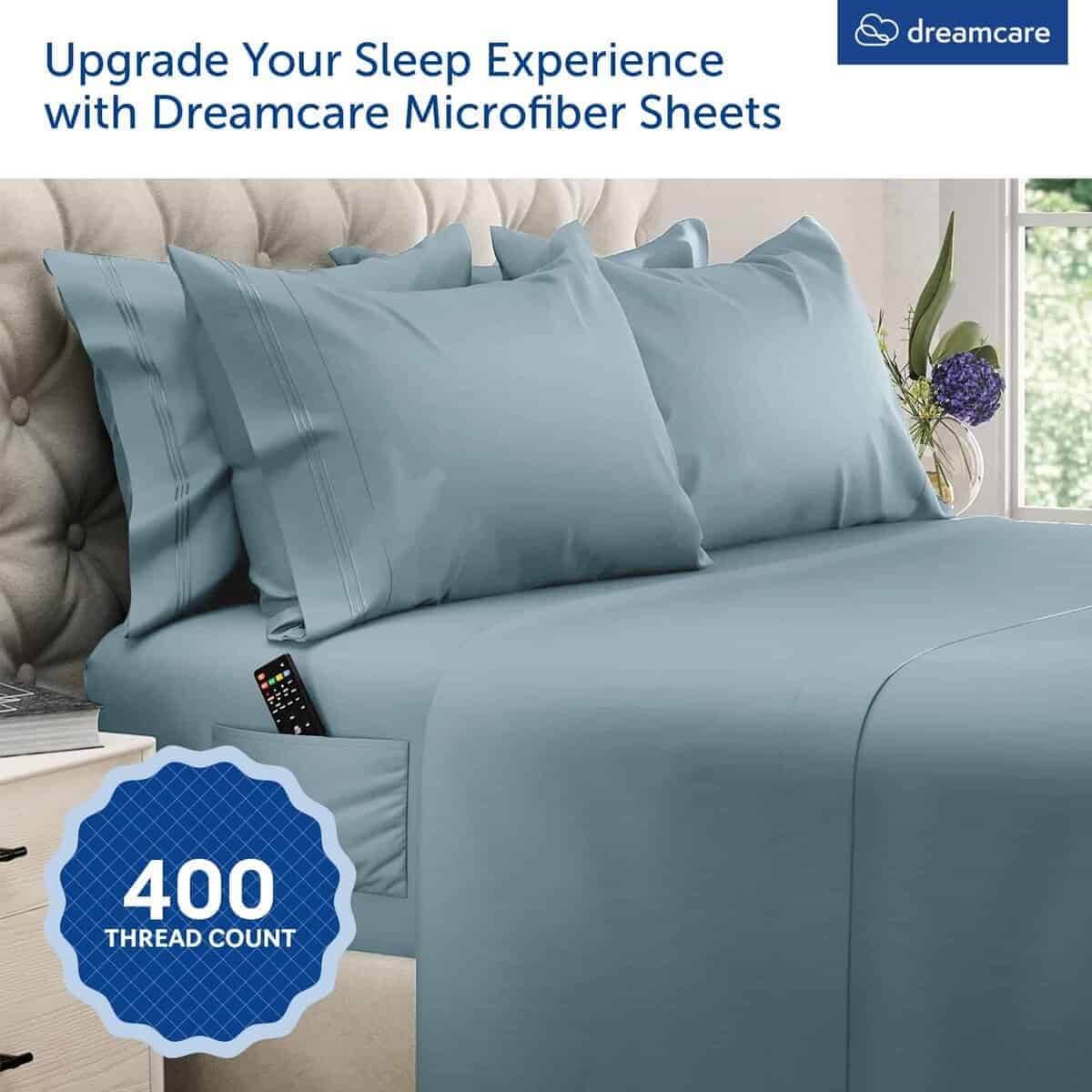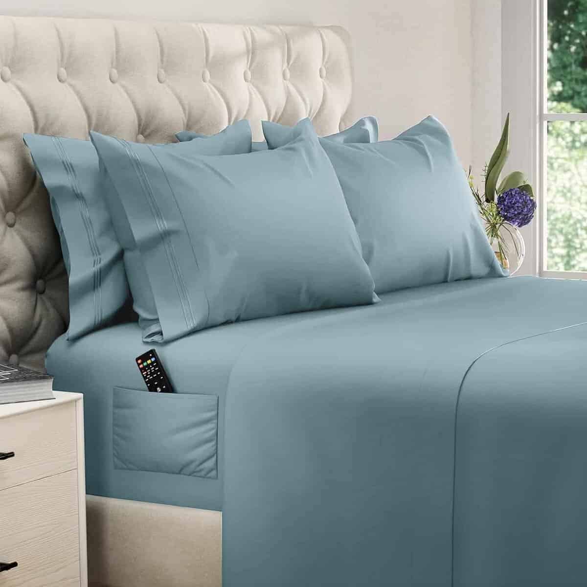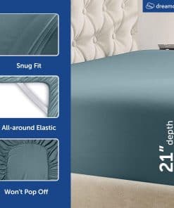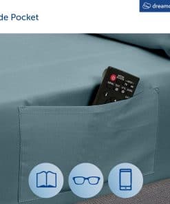 El juego de sábanas de microfibra Dreamcare de 6 piezas para cama King en color azul mineral es una excelente opción para quienes buscan comodidad y durabilidad. Las sábanas son suaves y duraderas, lo que garantiza un descanso tranquilo. El conjunto incluye una sábana ajustable con bolsillo profundo, una sábana plana y cuatro fundas de almohada. Además, cuenta con un práctico bolsillo lateral en la sábana ajustable para guardar objetos como el teléfono, gafas o el control remoto de la TV. Fáciles de limpiar y cuidar, estas sábanas son una adición ideal a cualquier dormitorio.