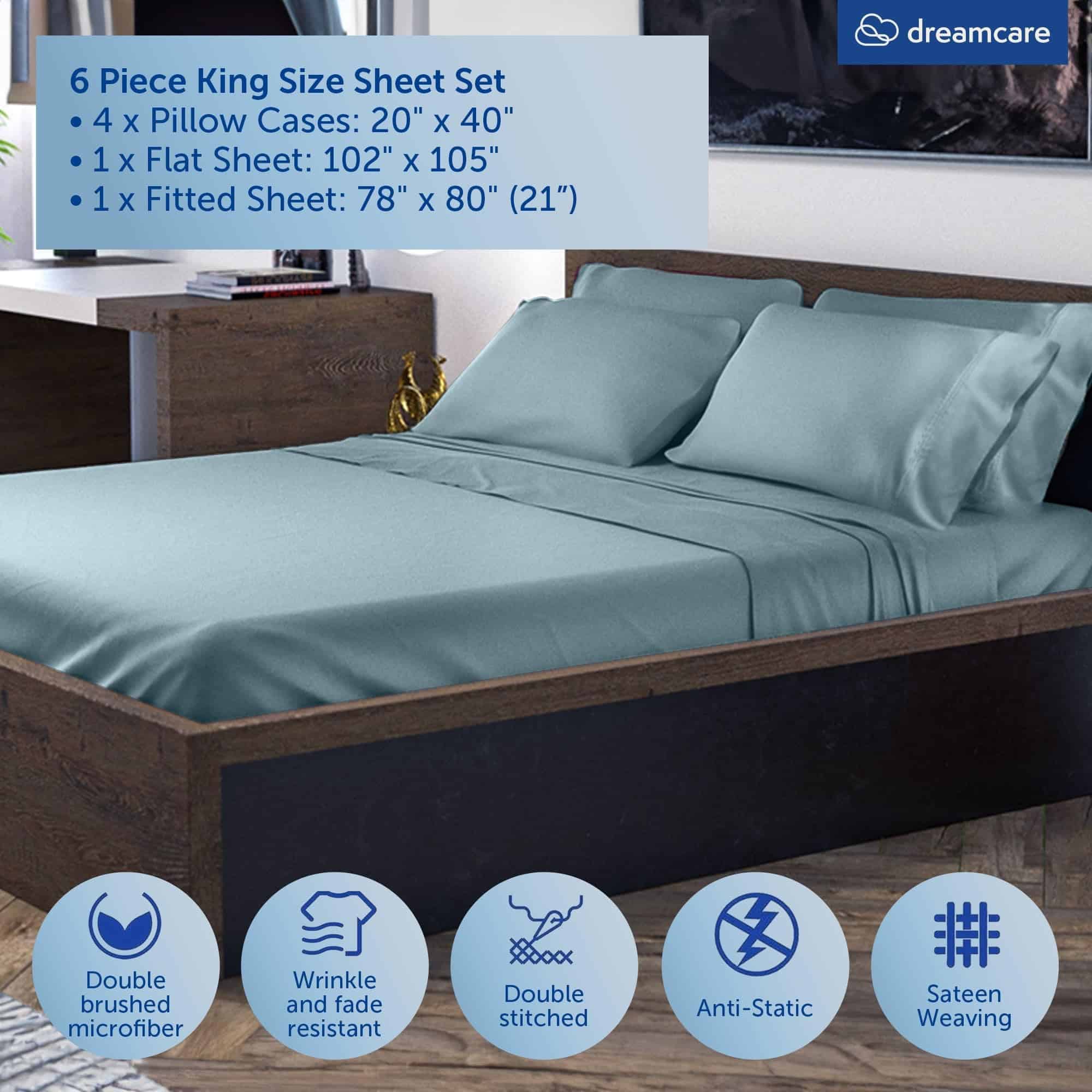 Juego de sábanas tamaño King DREAMCARE – 6 -Azul Mineral