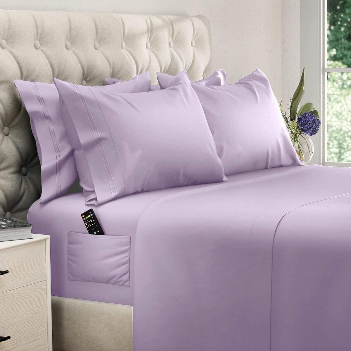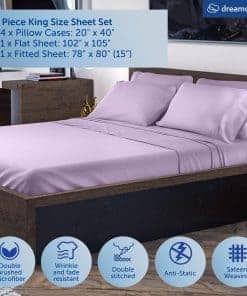 Juego de sábanas de microfibra Dreamcare de 6 piezas, tamaño King, Color Lavanda