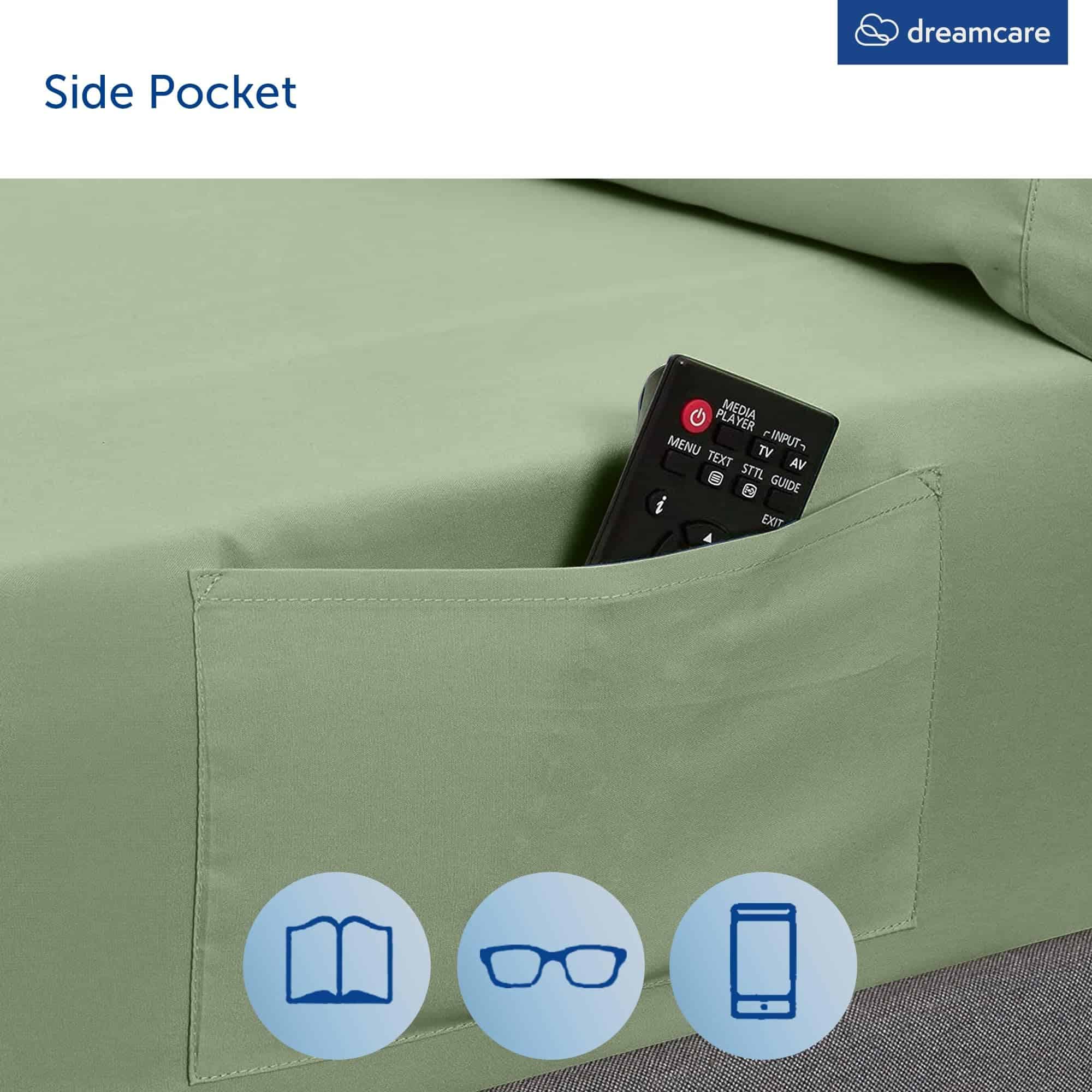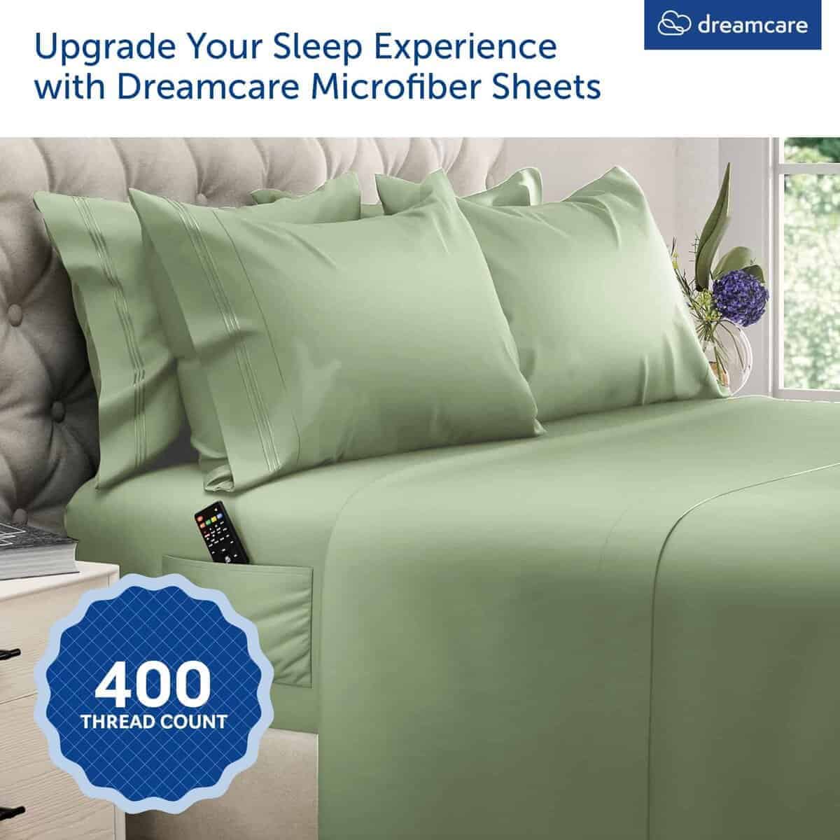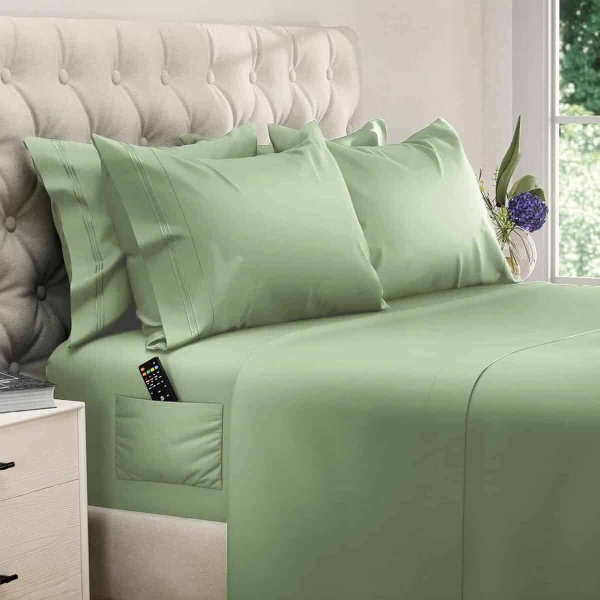 Juego de sábanas de microfibra Dreamcare de 6 piezas, tamaño King, verde salvia