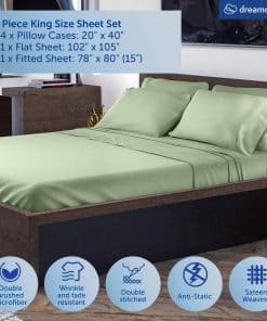 Juego de sábanas tamaño King DREAMCARE – 6 -Verde Salvia