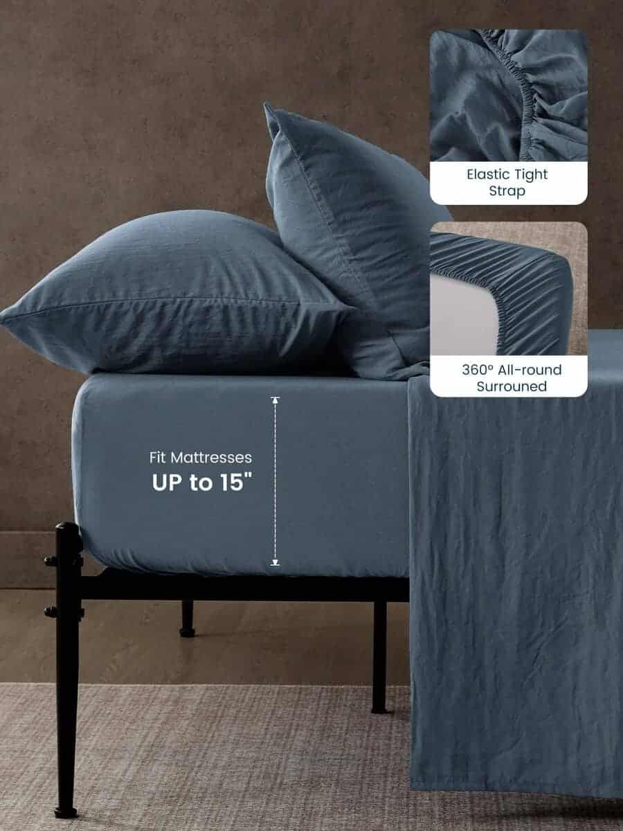 4. SÁBANA AJUSTABLE DE BOLSILLO EXTRA PROFUNDO: Estas sábanas ajustables cuentan con un elástico elástico a toda la vuelta que se ajusta a colchones con profundidades de 6 a 16 pulgadas. Ofrecen un ajuste más seguro en comparación con las sábanas de seda. No importa cuánto te retuerzas y gires durante el sueño, las sábanas resistentes permanecerán en su lugar.