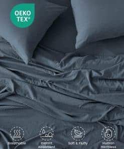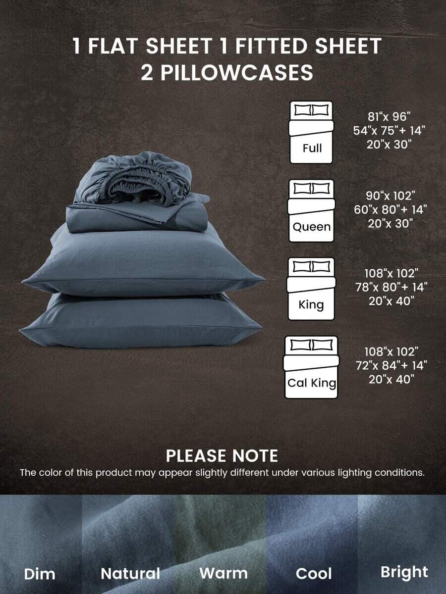 3. JUEGO DE SÁBANAS TAMAÑO KING – El juego de 4 piezas de sábanas incluye 1 sábana plana de 105″ x 102″, 1 sábana ajustable de 78″ x 80″, 1 funda de almohada de 20″ x 40″. (Los productos OEKO-TEX – MADE IN GREEN están probados para sustancias nocivas, siempre cuidan tu salud).