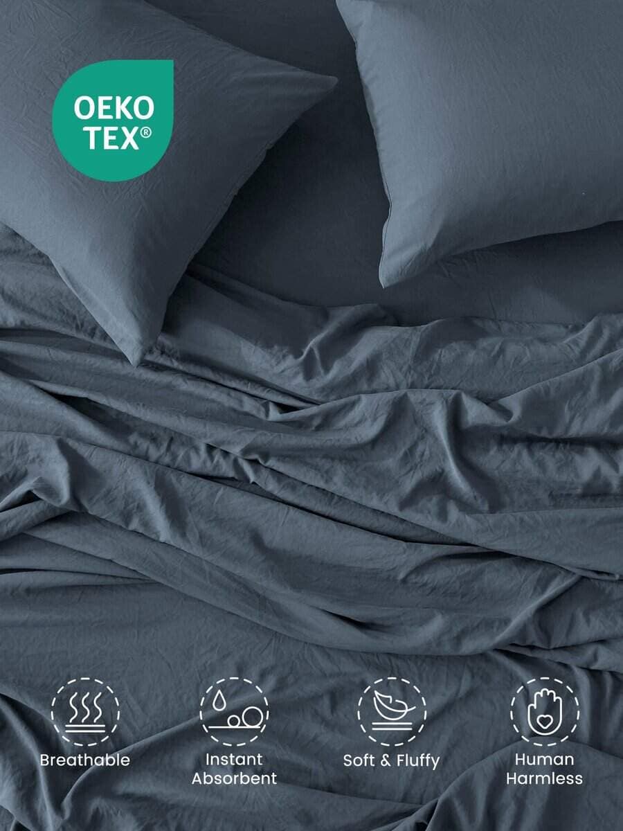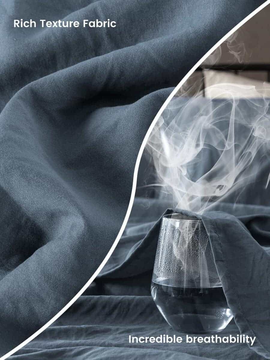 2. Estética apacible – Con la sensación suave general de algodón y lino y un aspecto ligeramente arrugado, esto da la sensación de vivir en un buen resort, agregando una capa de elegancia a la decoración de tu dormitorio mientras suaviza el conjunto de ropa de cama para una sensación más suave.