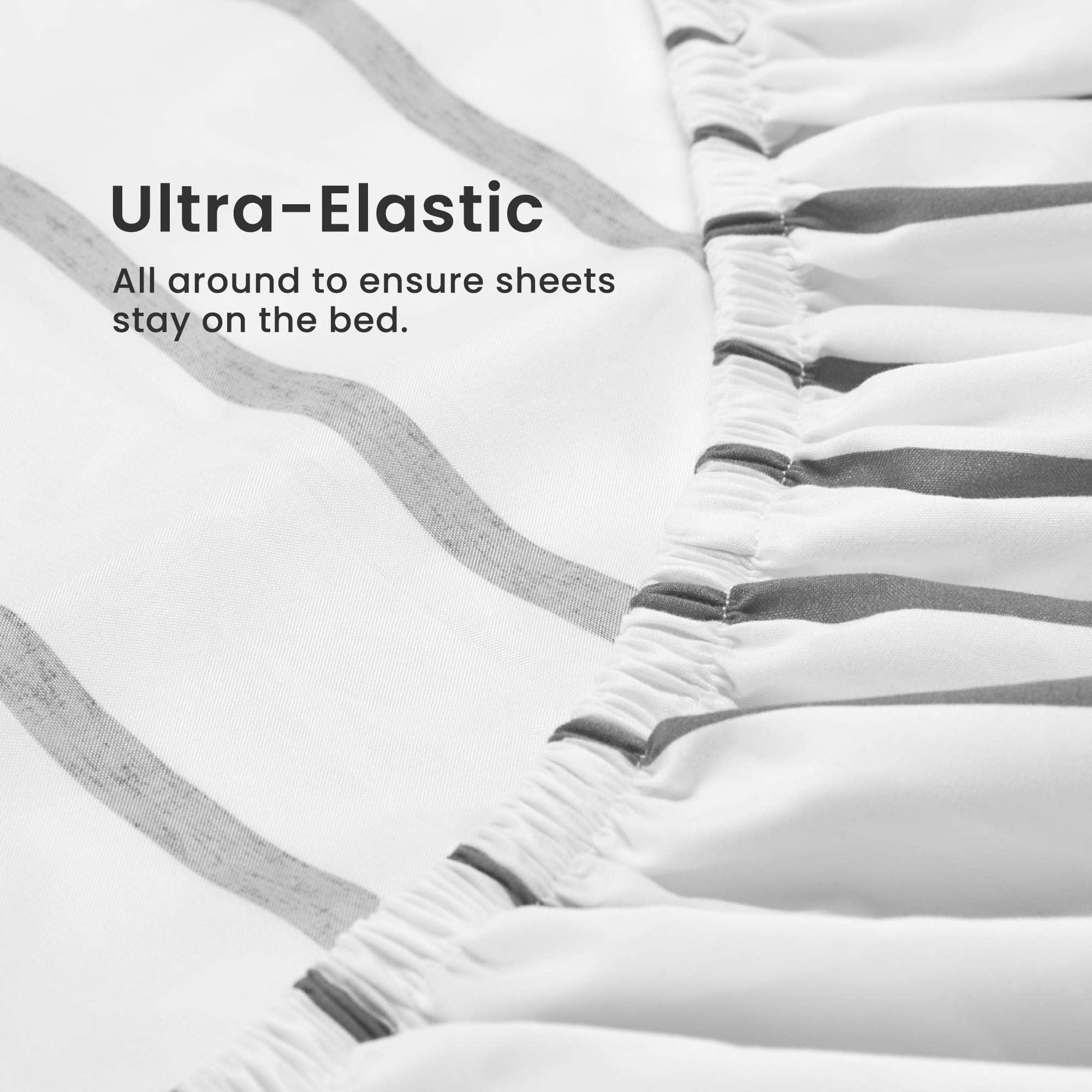 3. BOLSILLO PROFUNDO Y AJUSTE PRECISO El bolsillo profundo se adapta a colchones de hasta 16 pulgadas de profundidad, perfecto para colchones grandes. El tamaño King incluye juegos de sábanas de 4 piezas: 1 Sábana Plana de 102×105 pulgadas, 1 Sábana Ajustable de 80×78 pulgadas, 2 Fundas de Almohada de 20×40 pulgadas.