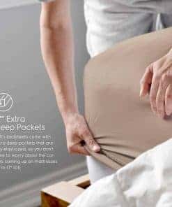 4. TEJIDO DE SATÉN SUPERIOR Y BOLSILLOS PROFUNDOS ¡Obtén la suavidad sedosa que te mereces! Las sábanas de Taft están hechas con un tejido de satén que es más suave y duradero que incluso el algodón de 1500 hilos. ¡Además, nuestras sábanas se vuelven aún más suaves con cada lavado! Duerme en paz sabiendo que tus sábanas tienen bolsillos profundos de 17 pulgadas y no se arrugarán durante la noche con elástico de 360 grados.