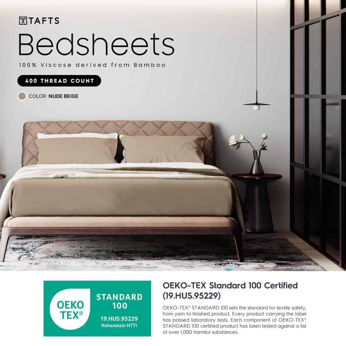 1. JUEGO DE SÁBANAS TAMAÑO KING 100% VISCOSA DERIVADA DEL BAMBÚ – Las sábanas de Taft están hechas del material de viscosa de bambú de mayor grado, lujosamente suave y 100% derivado del bambú. La Certificación OEKO-TEX Standard 100 (19.HUS.95229) establece el estándar de seguridad textil, desde el hilo hasta el producto terminado. Cada producto con la etiqueta ha pasado pruebas de laboratorio. Cada componente ha sido probado contra una lista de más de 1,000 sustancias dañinas. A diferencia de nuestros competidores, nunca mezclamos nuestras sábanas con otras fibras o telas.