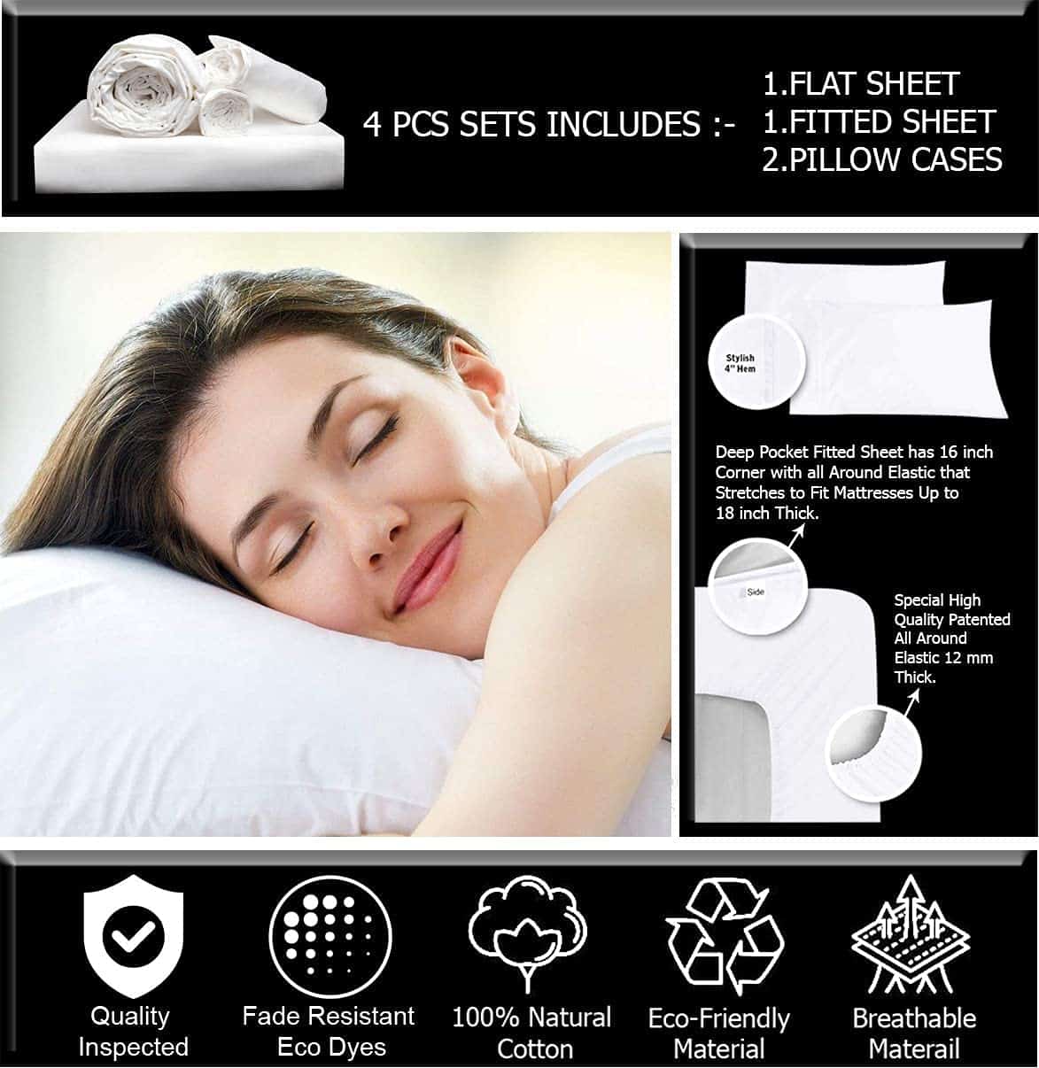 Dale a tu cama un toque de elegancia y comodidad con este juego de sábanas de algodón egipcio 100% que te mantendrá fresco en verano y cálido en invierno. ¡Duerme como la realeza con nuestras sábanas de calidad de hotel!
