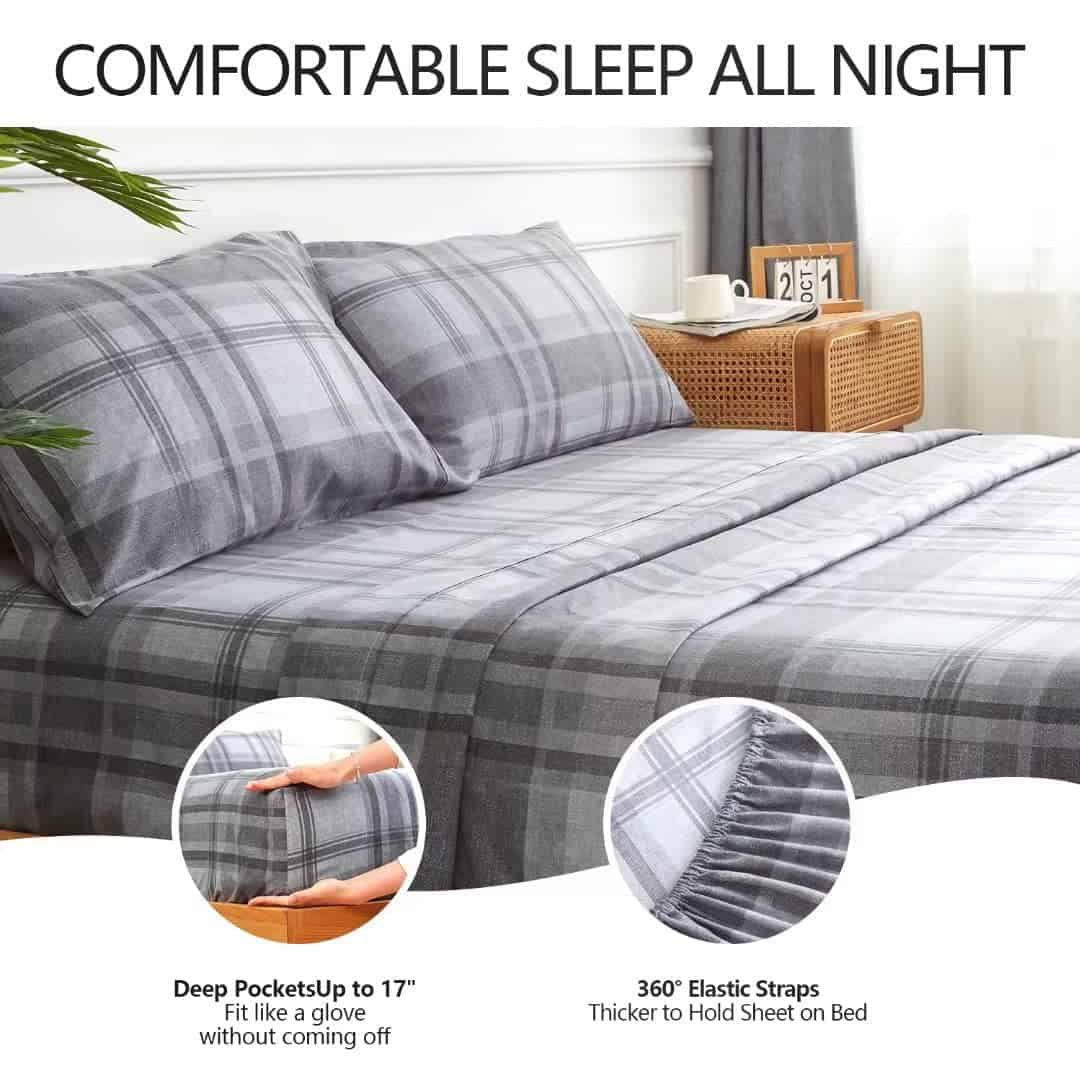 4. Se ajusta como un guante La sábana ajustable de bolsillo profundo puede ajustarse perfectamente a cualquier colchón de hasta 8 – 17 pulgadas de grosor y se ajustará fácilmente en las esquinas para permanecer en su lugar, 2 fundas de almohada con diseño de sobre para evitar que tus cómodas almohadas se salgan de las fundas durante tu dulce sueño.