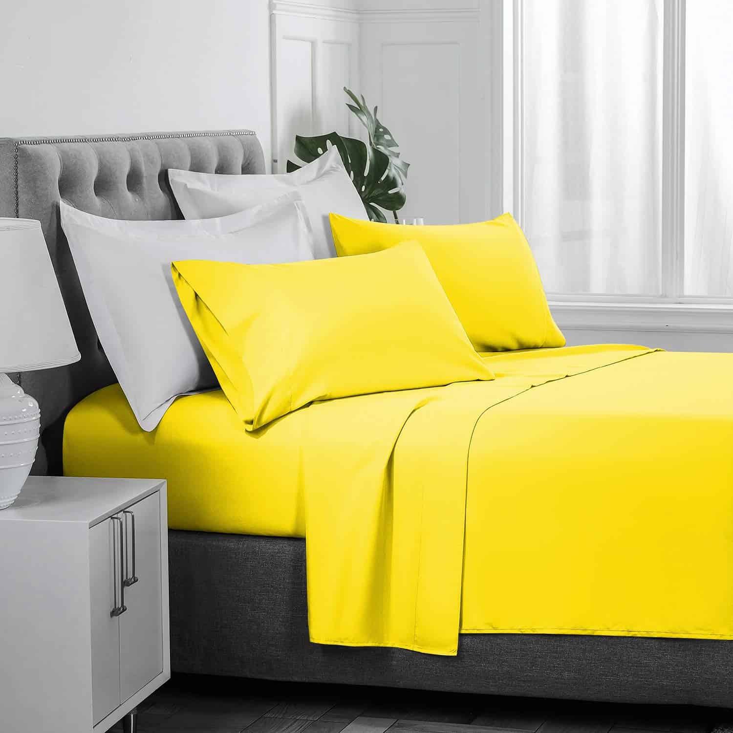3. POLIÉSTER DE MICROFIBRA DE CALIDAD PREMIUM: La tela de poliéster de microfibra de doble cepillado hace que el juego de sábanas sea excepcionalmente suave. Están hechos de los hilos de microfibra de mayor calidad. El material de microfibra está procesado para hacerlo resistente a la contracción y al desvanecimiento, lo que aumenta la longevidad del juego al mantenerlo en excelente estado.