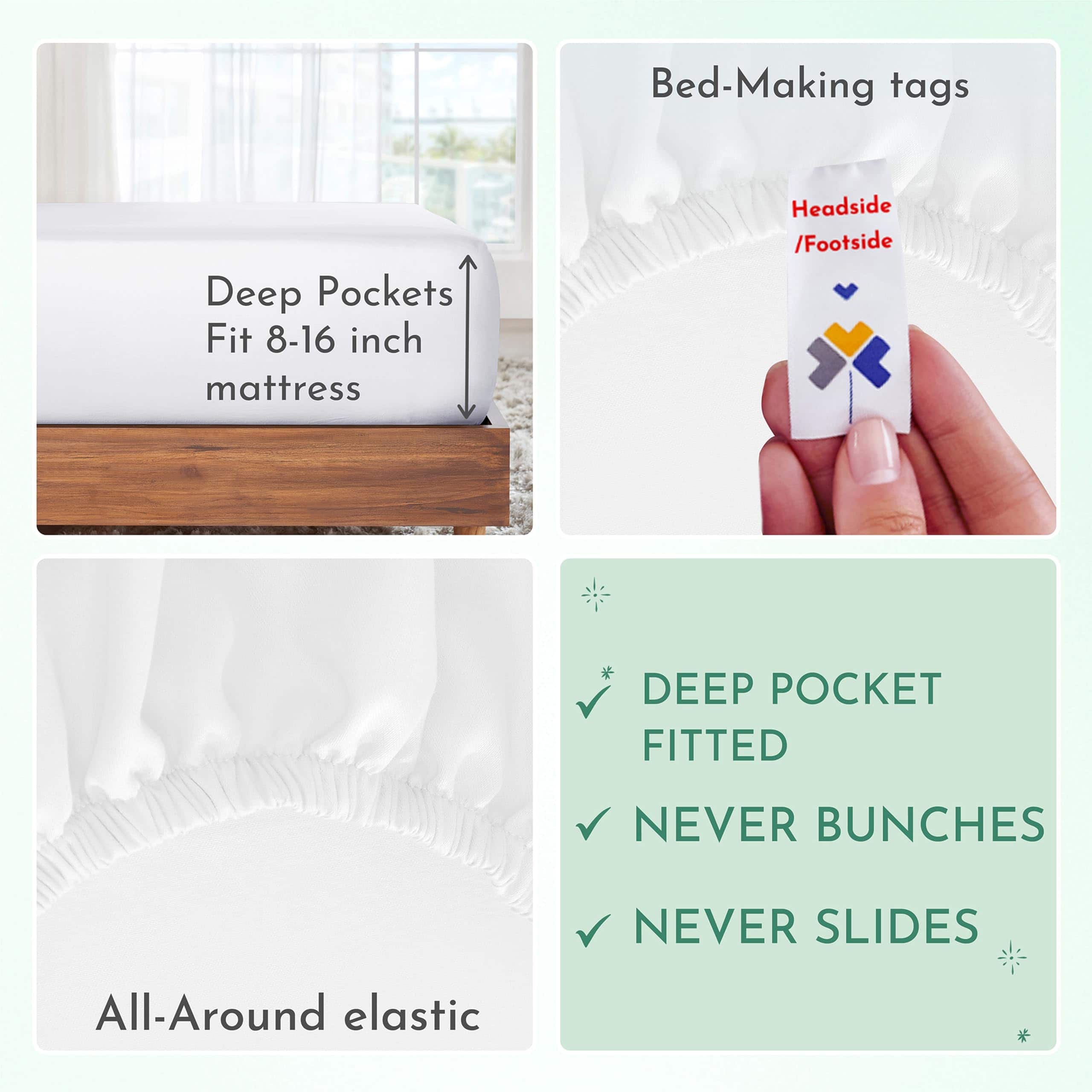 Disfruta la suavidad de nuestras sábanas de 600 hilos certificadas de satén de algodón 100%, proporcionando una experiencia moderna y elegante de hotel cinco estrellas en tu propio dormitorio. Nuestro lujoso juego de sábanas de algodón blanco brillante para reina te mantiene fresco y cómodo en todas las estaciones. Este juego de sábanas de bolsillo profundo para reina de 4 piezas incluye 1 sábana plana (90″W x 102″L), 1 sábana ajustable de bolsillo profundo para reina (60″W x 80″L) y 2 fundas de almohada (21″W x 32″ L) que se ajustan a almohadas de tamaño estándar y reina. La sábana ajustable inferior de nuestro juego de sábanas y fundas de almohada tiene un elástico duradero alrededor para adaptarse a colchones de 8 a 16 pulgadas de profundidad, y un indicador de lado de cabeza / lado de pie para hacer la cama fácilmente. Lava y seca a máquina nuestras sábanas de algodón de bolsillo profundo para reina al ajuste regular, y mantendrán su calidad durante años. Nuestro juego de sábanas de algodón para reina es duradero, y no se apelilla, destiñe o encoge. El algodón puro es suave en tu piel. Nuestro juego de sábanas de algodón es fresco y transpirable, ayudando a regular la temperatura corporal para una noche de sueño reparador incluso en verano. Nuestras sábanas están certificadas por Oekotex Standard 100, probadas para sustancias dañinas para proteger tu salud. Comprometidos con la sostenibilidad, en 2022 y 2023 donamos más de 22,000 piezas de ropa de cama a organizaciones benéficas locales en EE. UU. No usamos plástico en nuestro embalaje y nuestras sábanas se producen en nuestra fábrica de propiedad y operada por nuestra familia en India. Compra con confianza con nuestra política de devolución de 30 días, incluso si has lavado o usado nuestro producto.