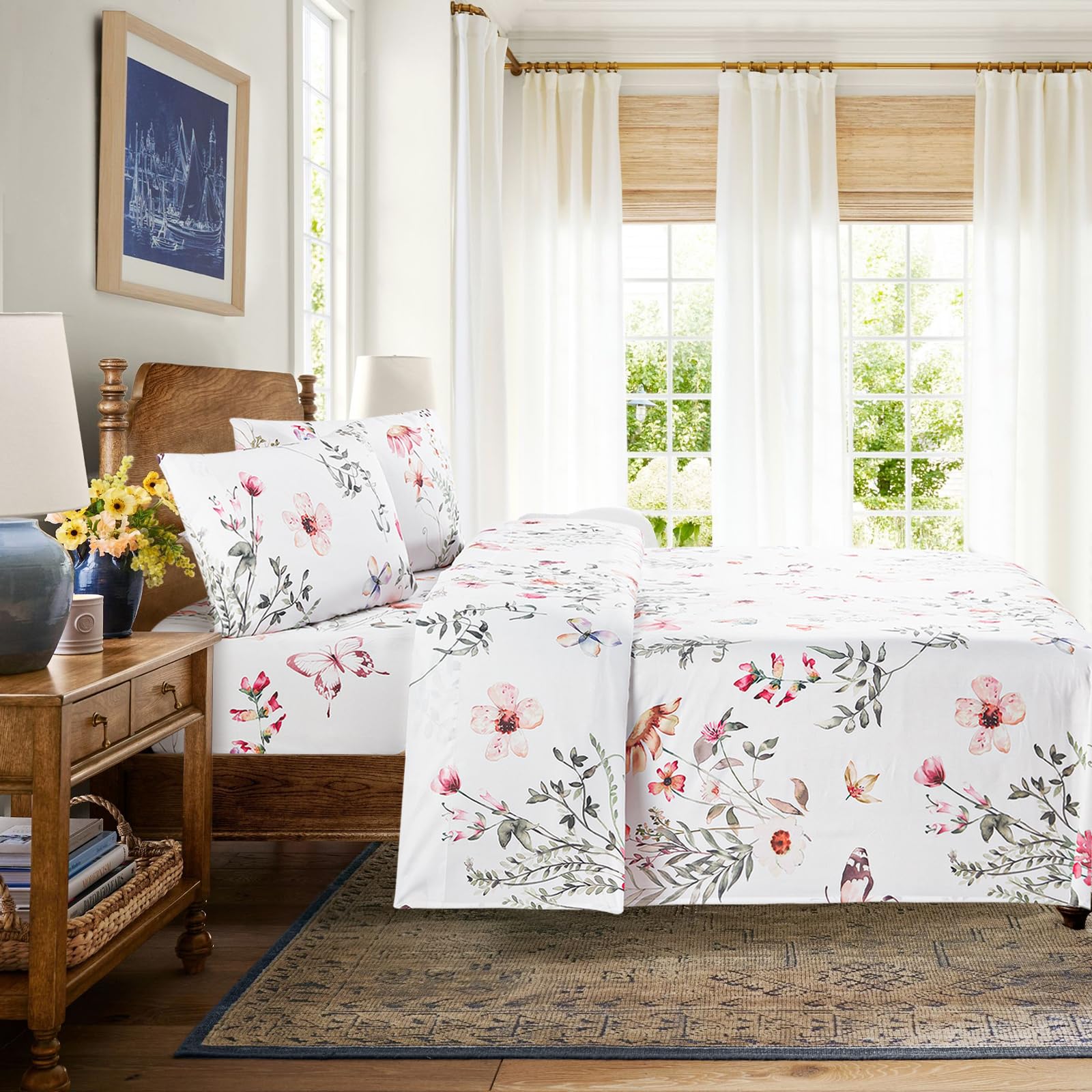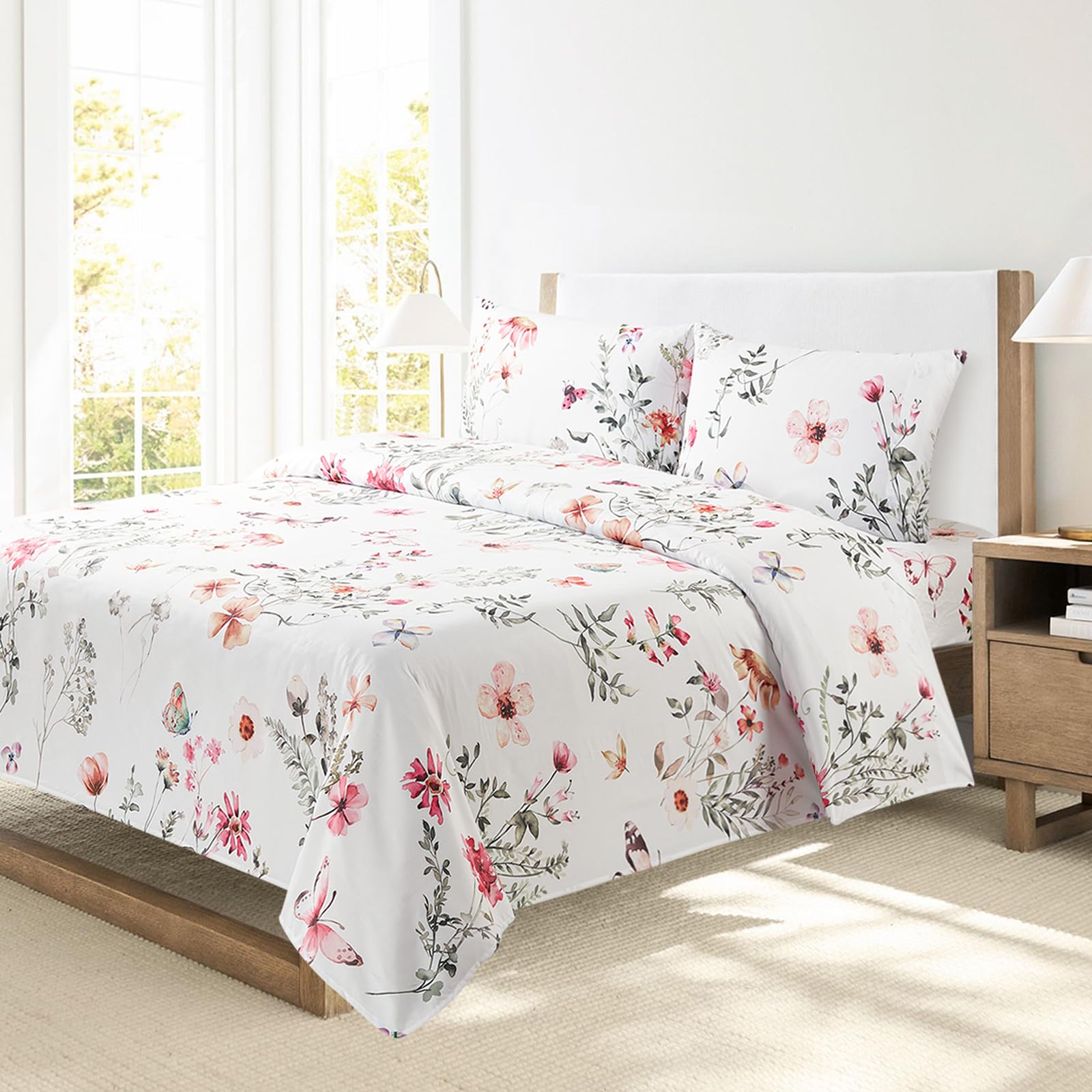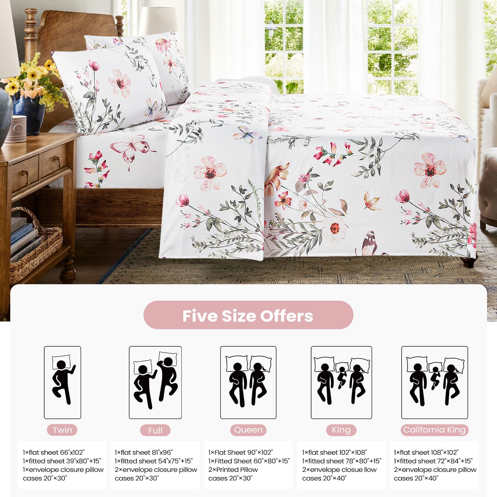 Nuestro juego de sábanas estampadas de Bloom Studio utiliza microfibra de 85GSM y telas de lujo súper suaves y frescas cepilladas doblemente para garantizar una experiencia de sueño de alta calidad. Estas sábanas son suaves al tacto y transpirables, lo que las hace ideales para crear un ambiente cálido y confortable para dormir. Son resistentes a la decoloración, contracción y arrugas, y son más gruesas y duraderas que las sábanas de algodón estándar.