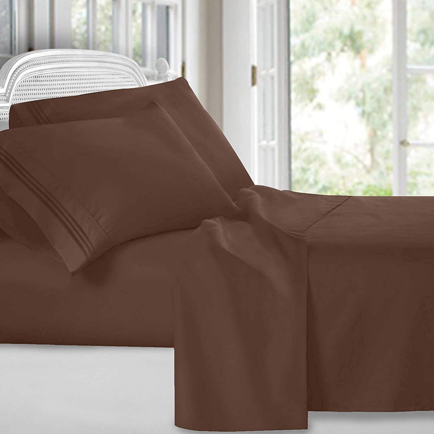 100% Algodón Egipcio, la mejor calidad en el mercado. El SET incluye: 1 sábana plana (102″ x 108″), 1 sábana ajustable (78″ x 80″) y 2 fundas de almohada (20″ x 40″). Nuestros bolsillos extra grandes tienen 19 pulgadas de profundidad. Hermosos dobladillos de 4 pulgadas en nuestras sábanas.