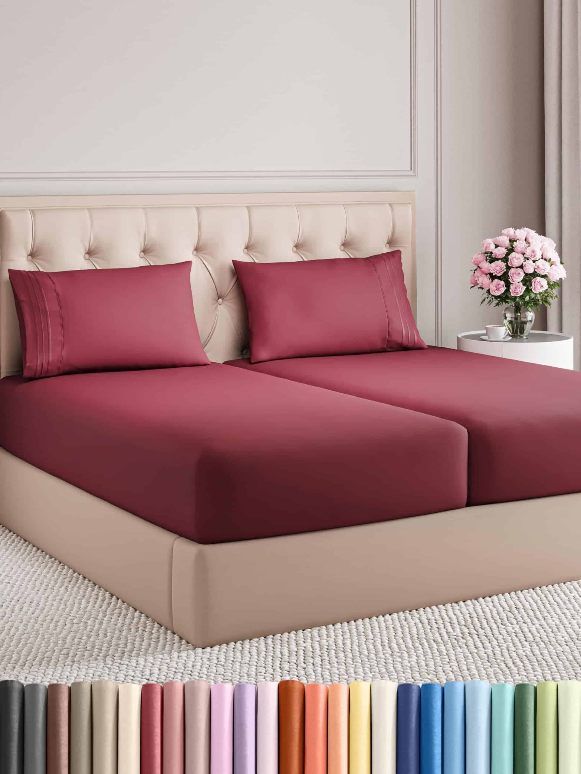 Juego de sábanas tamaño Split King de 5 -Burdeos