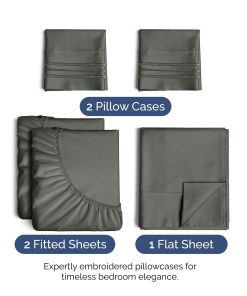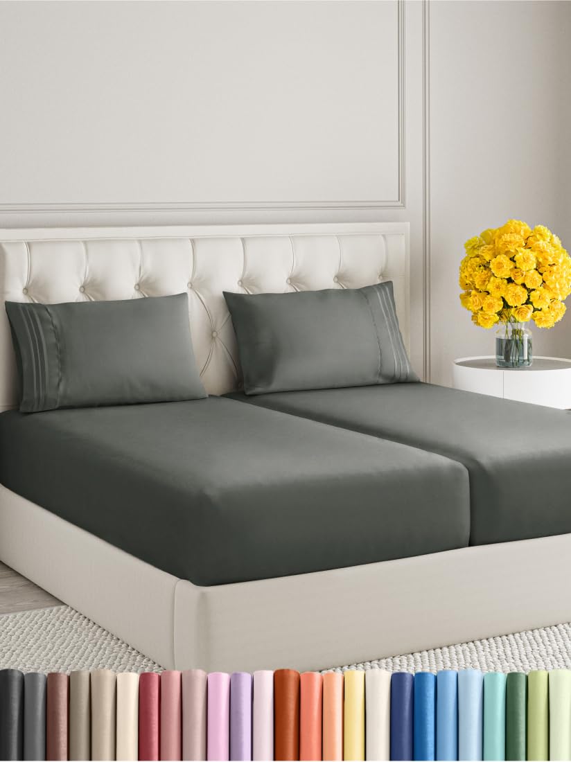 Juego de sábanas tamaño Split King de 5 -Gris pizarra oscuro