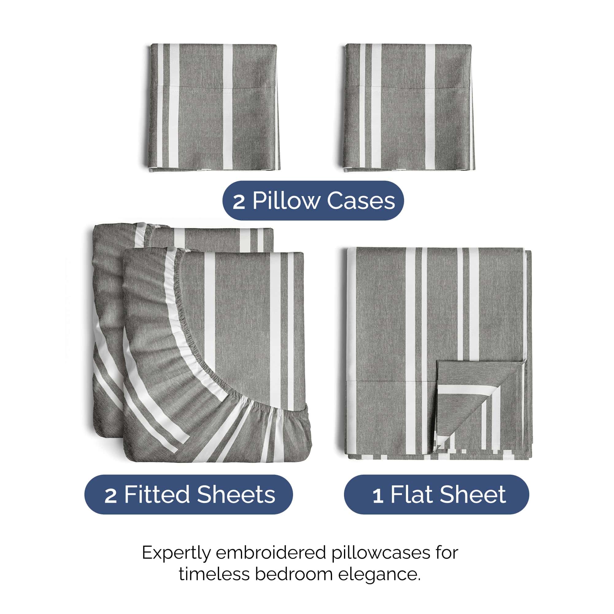 Este juego de sábanas tamaño Split King de 5 piezas es la opción perfecta para aquellos que buscan la máxima comodidad y suavidad en su cama. Con 2 fundas de almohada, una sábana plana y 2 sábanas ajustadas, este juego proporciona todo lo que necesitas para disfrutar de una experiencia de sueño increíble.