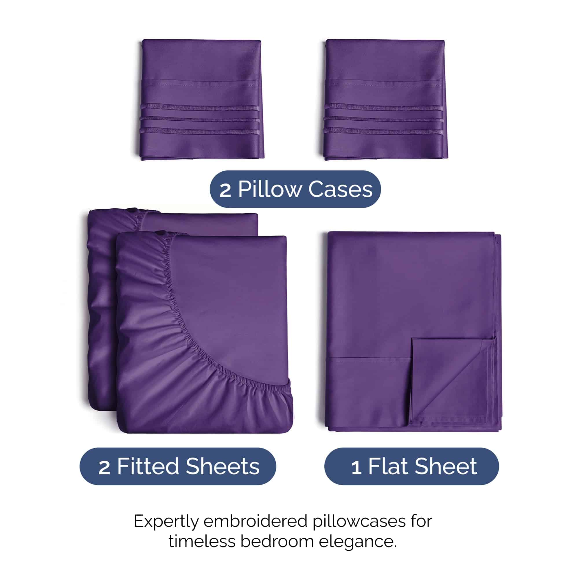 1. JUEGO DE SÁBANAS DE 5 PIEZAS: 2 fundas de almohada y una sábana plana y 2 sábanas ajustables. Sábana plana (108″ x 102″) 2 Sábanas ajustables (39″ x 80″) 2 Fundas de almohada (20 x 40).