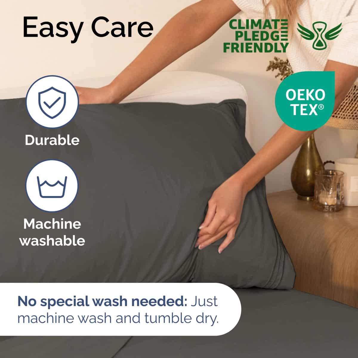 Si buscas sábanas muy suaves, ¡las has encontrado! Son transpirables, frescas y súper sedosas suaves. ¡La comodidad de estas sábanas te hará volver! Son más suaves que las sábanas de algodón egipcio y algodón orgánico. ¡Lo mejor para cualquier habitación de tu casa – dormitorio, habitación de invitados, RV, casa de vacaciones. Gran idea de regalo para todos! ¡Linger en tus sueños!