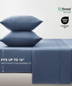 1. TEXTURA SEDA DE LUJO: Nuestro juego de sábanas TENCEL está hecho con fibras de TENCEL 100% Lenzing procedentes de Austria para garantizar la calidad premium. Tejido cuidadosamente con suavidad de seda, las fibras de TENCEL Lyocell ofrecen un confort transpirable y fresco. Certificado Oeko-Tex Standard 100 seguro y libre de sustancias nocivas. 2. FRESCURA TODO EL AÑO: TENCEL se teje expertamente para apoyar la regulación térmica natural de tu cuerpo, garantizando una sensación fresca y seca durante toda la noche. La transpirabilidad inherente de la tela natural y sus propiedades de absorción de humedad trabajan armoniosamente para crear un ambiente de sueño cómodamente fresco. Disfruta de la combinación perfecta de transpirabilidad, suavidad y durabilidad para su uso durante todo el año y una noche de descanso reparador. 3. LUJO SUSTENTABLE: Acepta la comodidad consciente con nuestra TENCEL Lyocell de origen sostenible, una tela Carbon Zero procedente de árboles de eucalipto. Hecho con un proceso de producción cerrado eco-consciente para que cada noche de sueño se convierta en un paso hacia un futuro más ecológico. Experimenta la mezcla perfecta de lujo y sostenibilidad. 4. DETALLES ATENTOS: Nuestro juego de sábanas incluye una sábana plana (102»x90»), una sábana ajustable (80»x60»x16») y dos fundas de almohada (20»x30»). La sábana ajustable, con prácticas etiquetas de lado corto/largo y un bolsillo profundo que se adapta a colchones de hasta 16 pulgadas, asegura la colocación de la cama sin esfuerzo. Cada detalle garantiza calidad duradera y lujo para su descanso. 5. CUIDADO SIN ESFUERZO: Lavable a máquina y apto para secadora. Experimenta sábanas que mantienen una vibración constante, asegurando que resisten la decoloración, el encogimiento o la formación de bolitas con el tiempo. Disfruta de su suavidad lujosa y sus tonos duraderos que permanecen intactos lavado tras lavado, disfrutando de años de comodidad y lujo incomparables. Date un gusto a ti mismo o a un ser querido con el regalo definitivo de belleza y ropa de cama fácil de cuidar.