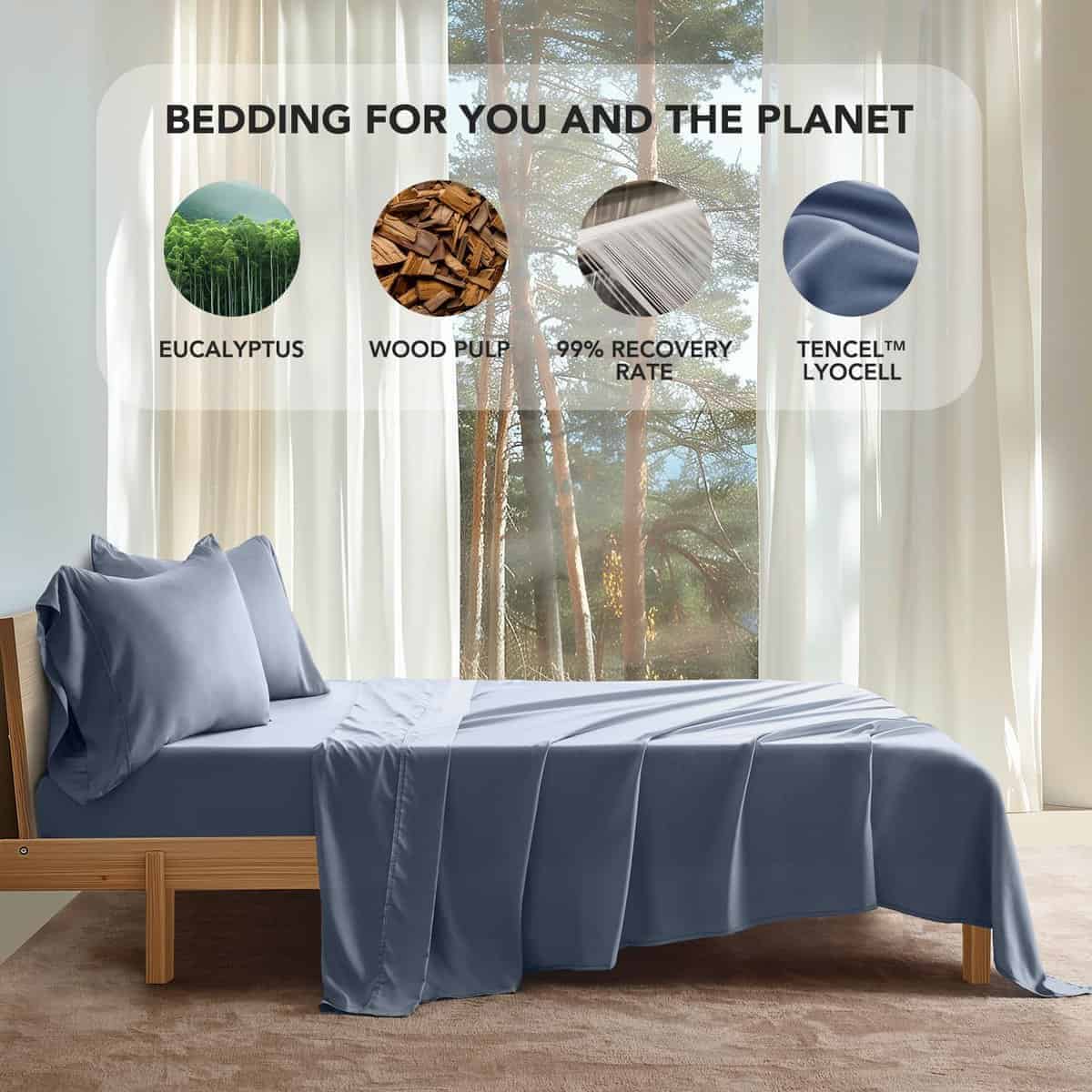 Juego de sábanas Tencel EVERGRACEHOME tamaño Queen 4 piezas