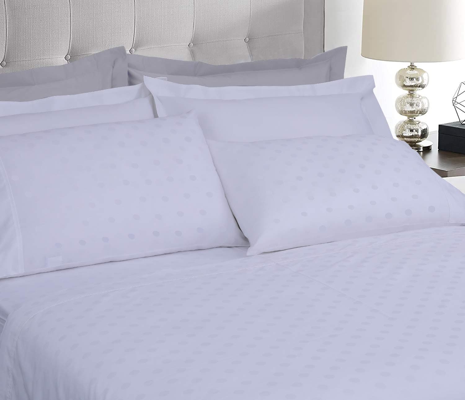 Duerma en la nube con nuestro juego de sábanas de algodón de 300 hilos. Con un diseño jacquard exclusivo, estas sábanas ofrecen una elegancia y durabilidad notables. El conjunto de 4 piezas incluye sábana plana, sábana ajustable y fundas de almohada King. Son lavables a máquina y están hechos con materiales de calidad para resistir el paso del tiempo. Además, cuentan con certificación OEKO TEX y se fabrican con prácticas sostenibles para una experiencia de lujo sin igual.