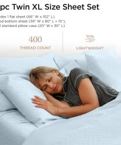 Disfruta de la sensación de dormir en algodón egipcio excepcionalmente suave con nuestro juego de sábanas de 400 hilos AUTÉNTICO ALGODÓN EGIPCIO, DURADERO CON 400 HILOS Y SUAVE JACQUARD CELENE DAMASK Sumérgete en la sensación acogedora del 100% de puro algodón egipcio con nuestros juegos de sábanas premium de 400 hilos; que están fabricados con hilos de algodón egipcio de fibra extra larga, obteniendo el sello dorado acreditado de autenticidad. Con el lujoso tejido de 400 hilos, olvídate de los problemas de los sudores nocturnos y abraza la transpirabilidad de la ropa de cama. El jacquard celine damasco añade un brillo lustroso y un aspecto elegante a la sábana. JUEGO DE SÁBANAS DE 4 PIEZAS CON SÁBANA BAJERA DE BOLSILLO PROFUNDO QUE SE AJUSTA PERFECTAMENTE Desde añadir un pequeño toque de color fresco hasta renovar todo el dormitorio, nuestras sábanas son perfectas para todas tus necesidades. Cada juego de ropa de cama incluye 1 sábana bajera ajustable, 1 sábana plana y 1 funda de almohada estándar. La sábana bajera con bolsillo profundo y elástico alrededor y bolsillo profundo tamaño se ajusta a tus colchones toda la noche. EXCELENTE TRABAJO PARA UNA CALIDAD SUPERIOR Y FÁCIL CUIDADO Amas la sensación de las sábanas de calidad de hotel Nuestras opulentas sábanas de 400 hilos son lo que necesitas. Para asegurarte de recibir la cúspide de la calidad, cada tela se une expertamente. La ropa de cama se vuelve más suave y conserva el color incluso después de lavarlo, dando un confort duradero. Estas sábanas lavables a máquina deben secarse en secadora a baja temperatura y plegarse inmediatamente para evitar arrugas y encogimiento. PRÁCTICAS CERTIFICADAS Y SOSTENIBLES PORQUE NOS IMPORTA En Threadmill home linens, fabricamos la más alta calidad de productos de manera sostenible. Todos nuestros productos y prácticas están certificados con OEKO TEX para tu seguridad y confianza. Mostramos nuestro cuidado por el planeta alimentando nuestra fábrica de última generación con energía eólica y solar. Estas sábanas se empacan en bolsas de tela de algodón reutilizables sin plástico para evitar el uso de plástico. Junto con el lujo y la calidad, nuestros productos vienen con una garantía de satisfacción del 100%.
