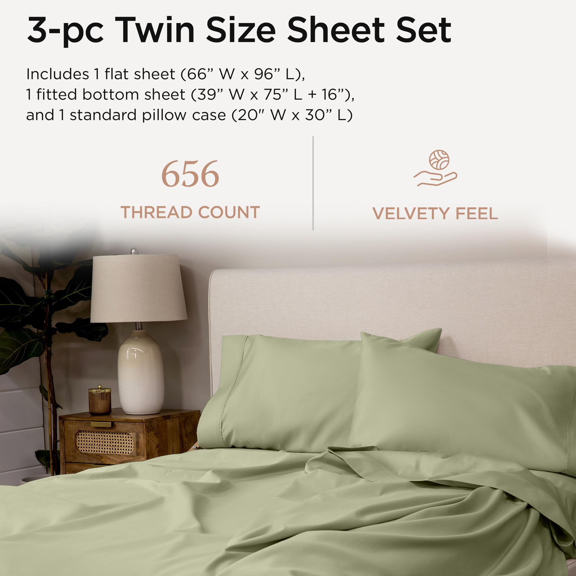 Juego de sábanas Threadmill Twin | Sábanas de algodón Supima 100% para colchón twin | Juego de sábanas sateen twin sólido con bolsillo profundo de 16” | Juego de sábanas refrescantes de 3 piezas transpirables | Sábanas verdes salvia