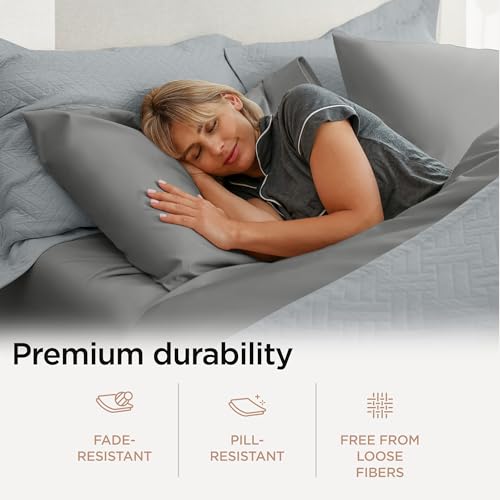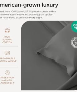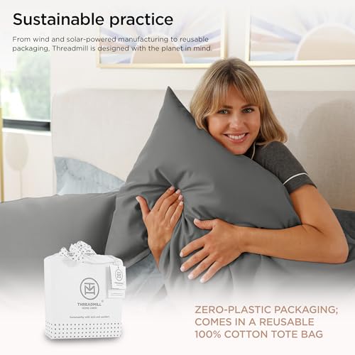 Juego de sábanas Threadmill Twin | Juego de sábanas de algodón Supima 100% para colchón Twin | Juego de sábanas de satén sólido Twin con bolsillo profundo de 16” | Juego de 3 piezas de sábanas frescas y transpirables | Sábanas Gris Oscuro