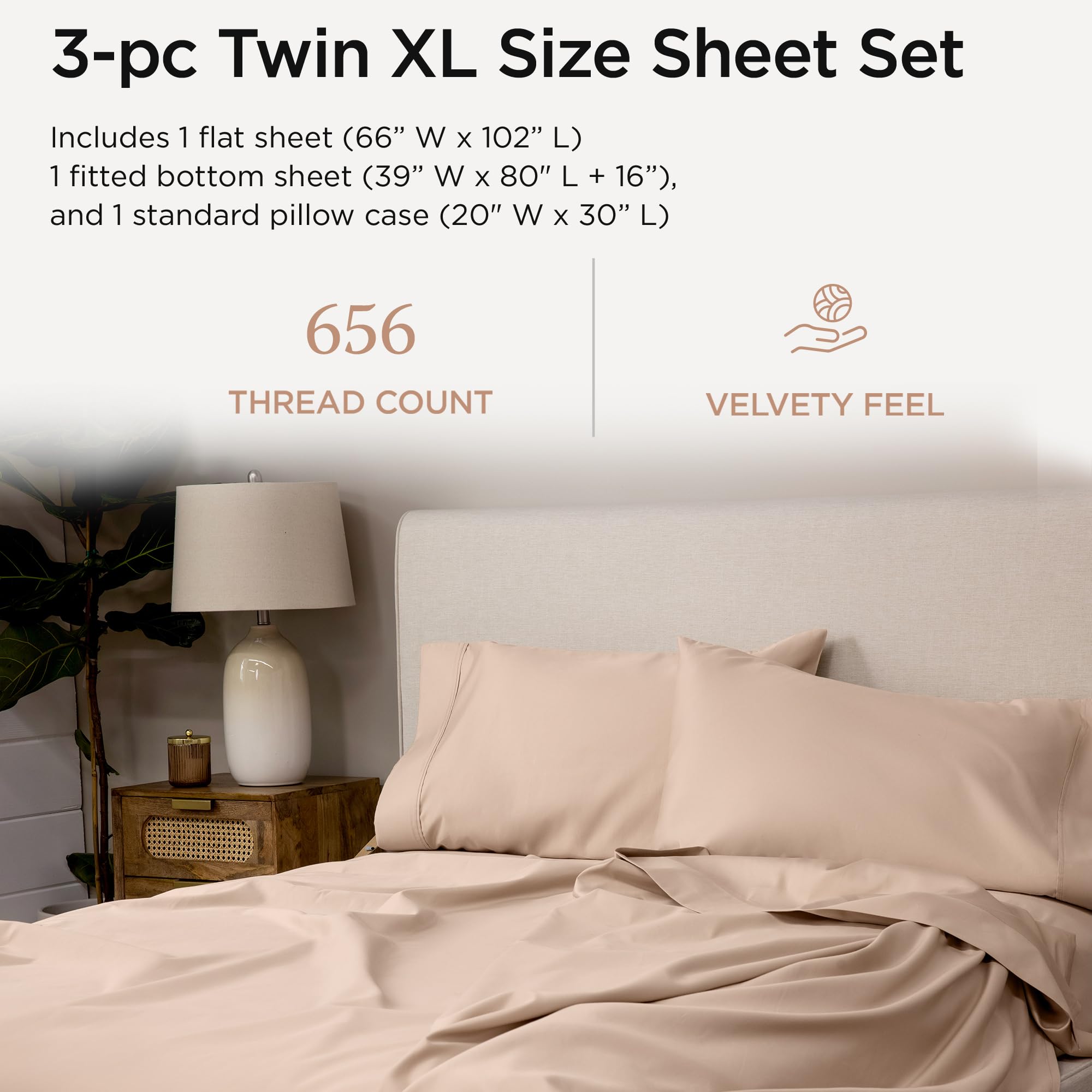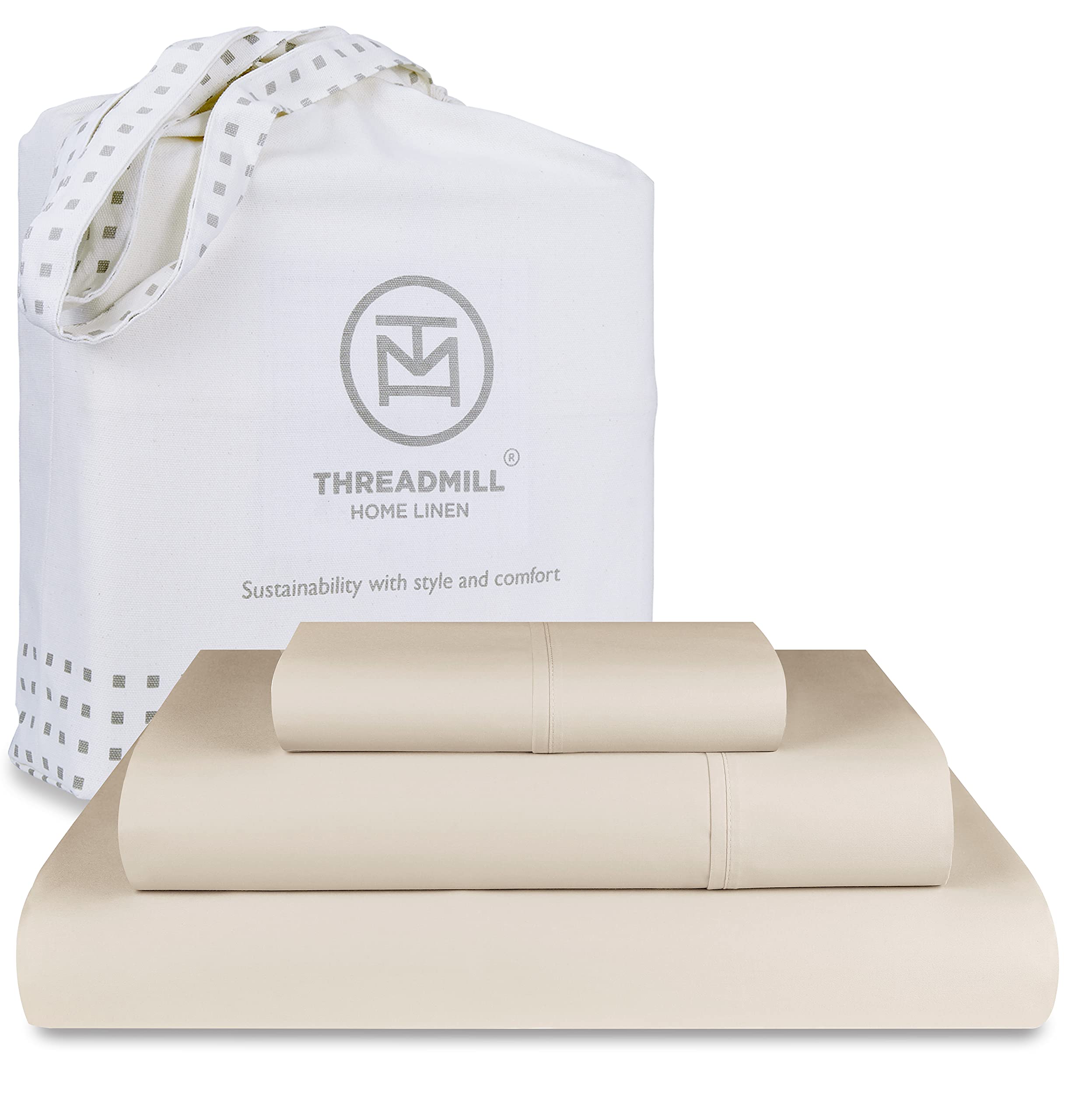 Juego de Sábanas Threadmill Twin XL | Juego de Sábanas 100% Algodón Supima para Colchón Twin XL | Juego de Sábanas de Satén Sólido Twin XL con Bolsillo Profundo de 16″ | Suave y Transpirable Juego de 3 Piezas de Sábanas de Enfriamiento | Juego de Sábanas Beige