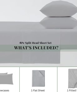 1. Juego de sábanas Split Top King ajustables de algodón incluye: Una sábana plana mide 102 pulgadas de ancho x 108 pulgadas de largo, una sábana ajustable de división superior de 78 pulgadas de ancho x 80 pulgadas de largo con 6 bolsillos en las esquinas para adaptarse a un colchón de bolsillo profundo de 18 pulgadas y dos fundas de almohada King que miden 20 pulgadas de ancho x 40 pulgadas de largo cada una. 2. Información del material: Juego de sábanas Top Split Head 100% algodón egipcio ofrece una codiciada combinación de resistencia superior, suavidad lujosa y hermoso brillo. Este juego de sábanas está hecho de puro algodón 100%. 3. Garantía de satisfacción del 100%: Nos comprometemos a asegurarnos de que ames tu ropa de cama nueva y tengas una experiencia excepcional. Juego de sábanas que transforma un dormitorio en un oasis, queremos que ames todas las noches en nuestra ropa de cama de alta calidad. Regala el regalo definitivo o date un capricho a ti mismo. ORDENA AHORA, sin riesgos. Si no estás completamente satisfecho, avísanos y lo arreglaremos. 4. Instrucciones de cuidado: Lavable a máquina con agua fría, ciclo delicado con detergente suave. No usar lejía, Secar este juego de sábanas con baja temperatura.