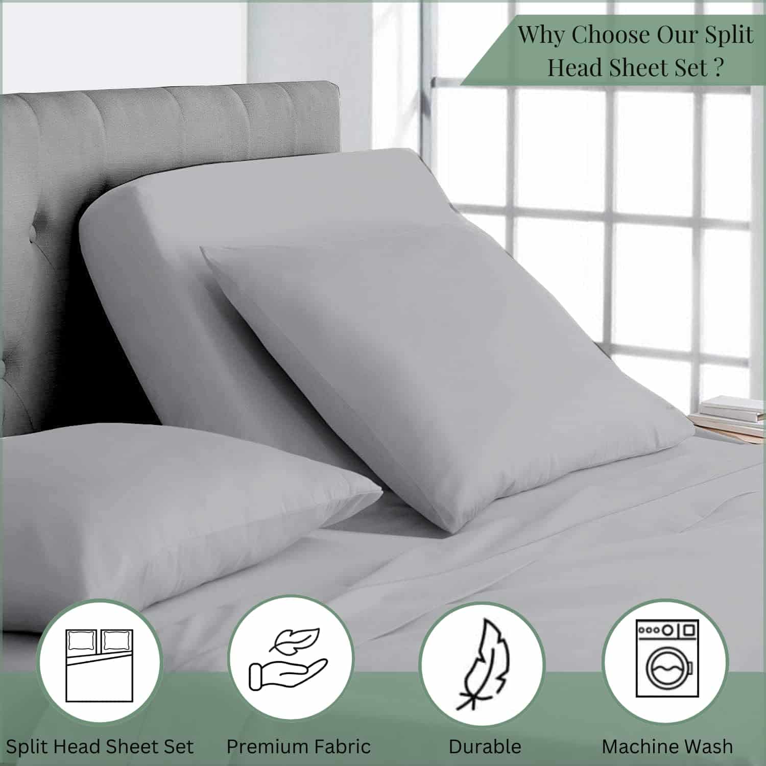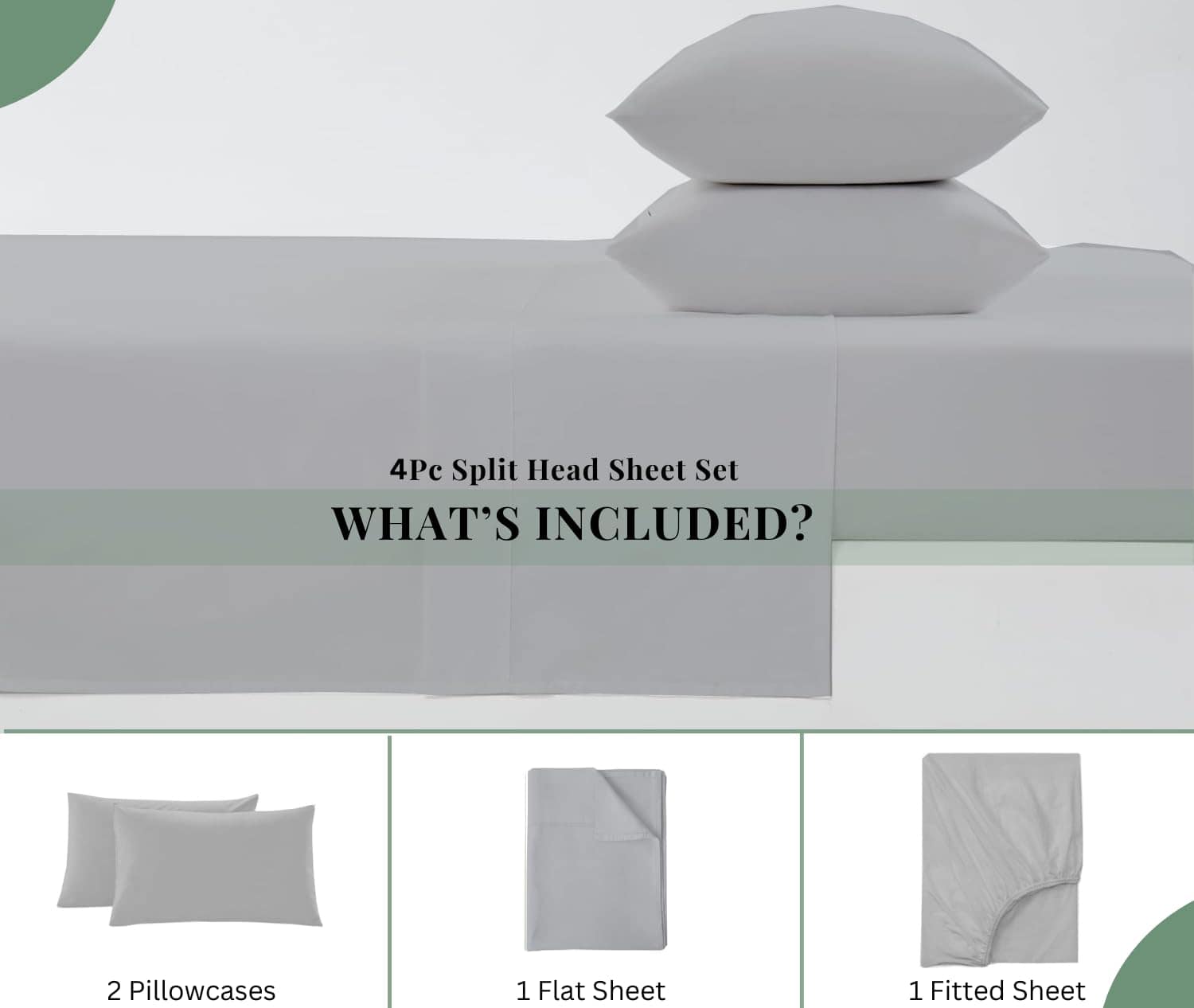 Juego de sábanas Top Split King para camas -Gris Claro Sólid